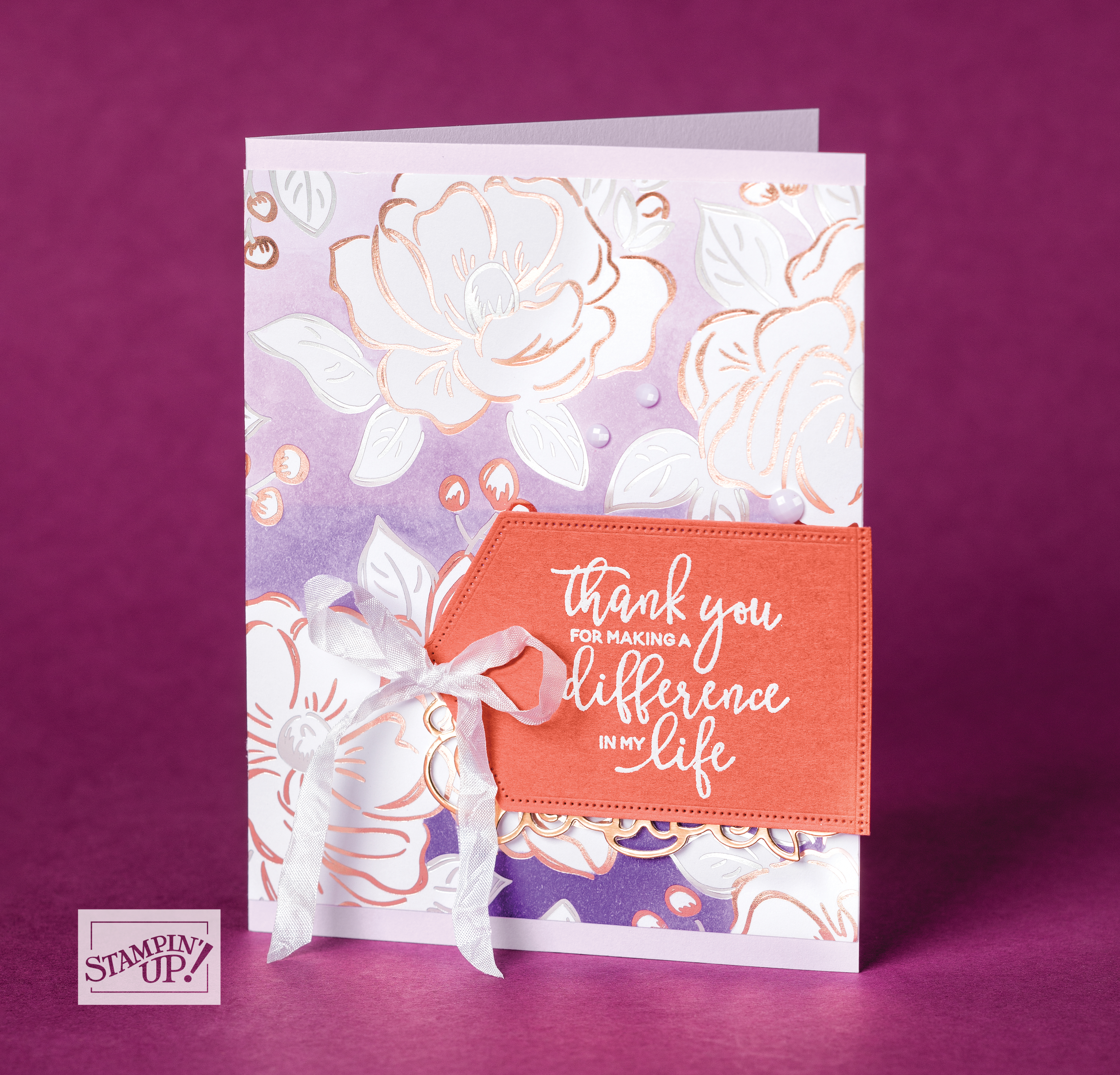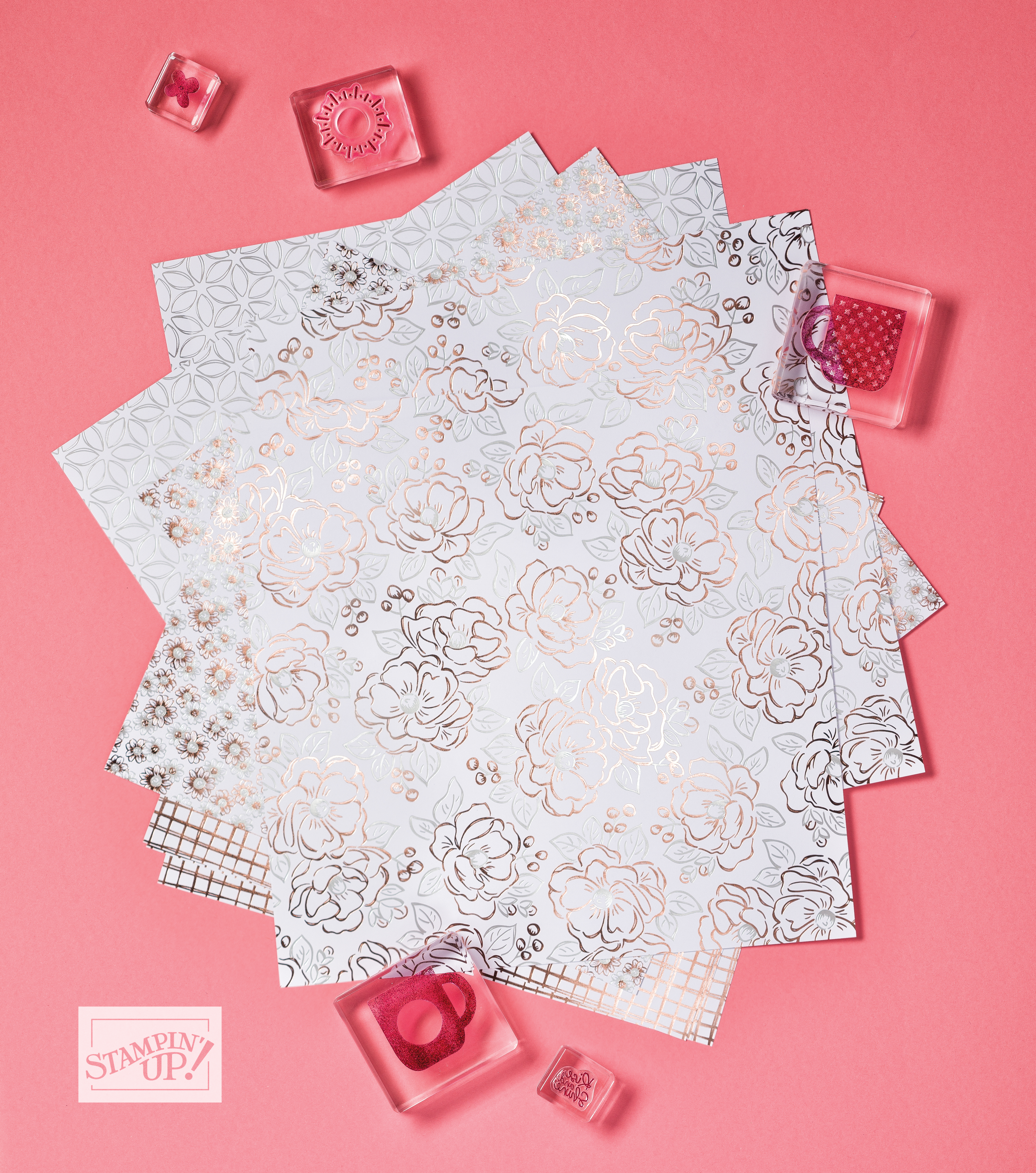 Stampin’ UP! have introduced some more goodies you can earn for FREE when you place an order on my on-line store! These include stamp sets as well as the most gorgeous DSP which I am featuring today! You are gonna be blown away with this paper, it is stunning!