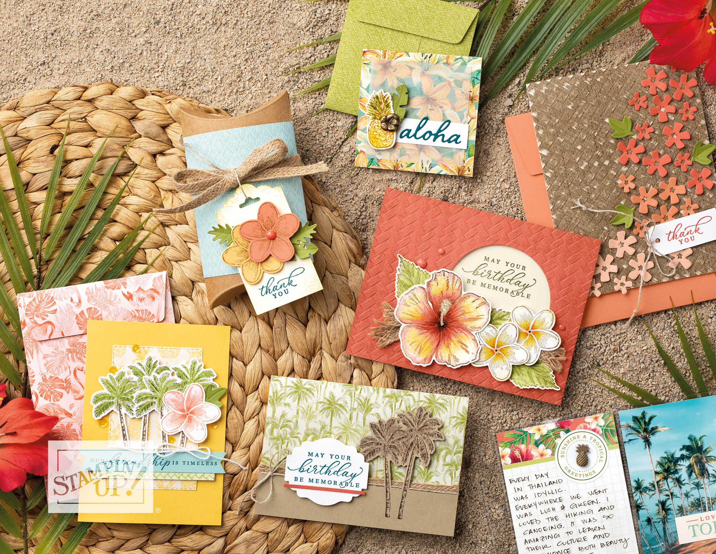 So we are all still practicing social distancing and if you are like me, hunkering down in the house and garden. I am sure we are all looking forward to our lives opening up at some time but in the meantime I have a virtual vacation to share today from the Stampin’ UP! Tropical Oasis Suite of products.