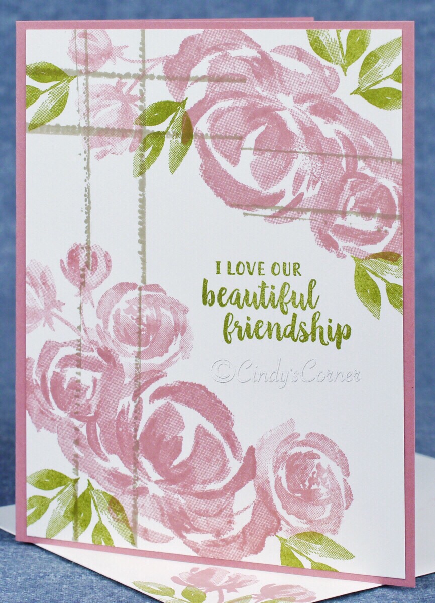 I used the Beautiful Friendship Stamp Set and three ink colors, that’s it so I am going to consider this another of my Sweet and Simple Challenge cards (Click here for more info) Scroll a little further down and you will see my ‘accidental’ stepped up version!