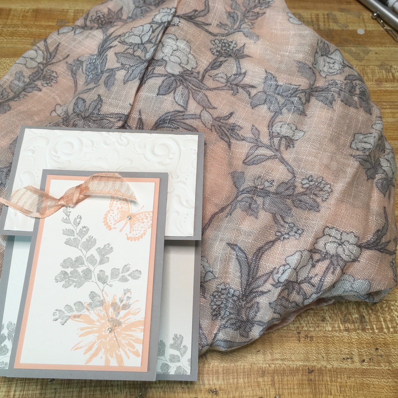 Welcome to June! I often share where my inspiration comes from – today my color combination is from a scarf I wear as an accent during the winter months (too hot to wear scarves during North Texas summer months) I was putting it on one day and recognized Petal Pink then Smoky Slate and so today’s card was born!