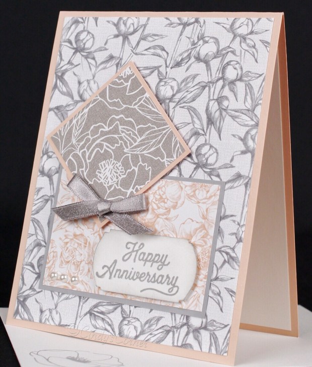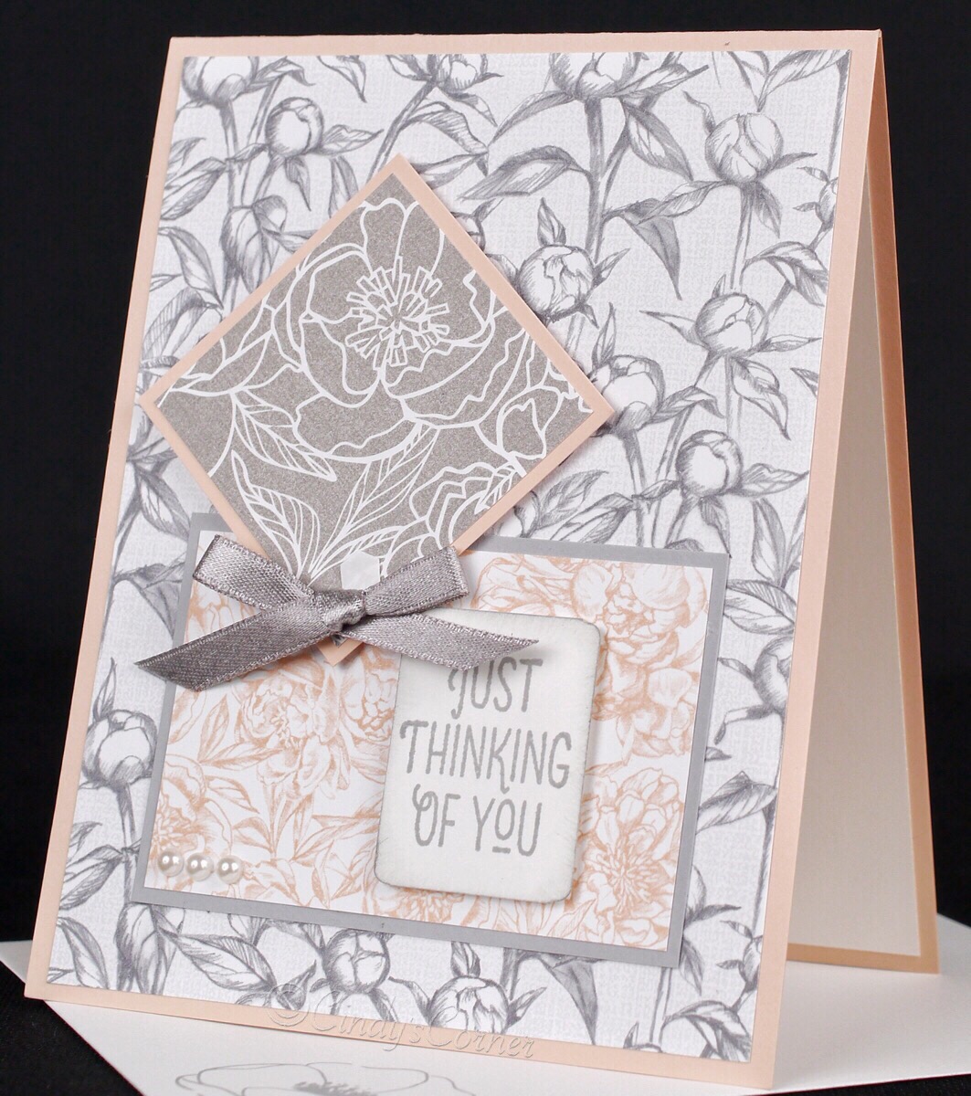 I am having a bit of a ‘thing’ with the Peony Garden Designer Series Paper – the soft florals in Basic Grey, Grey Granite, Petal Pink and Whisper White are just gorgeous, so much so I designed my July on-line class around this decorative paper.