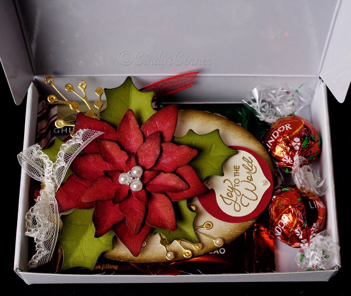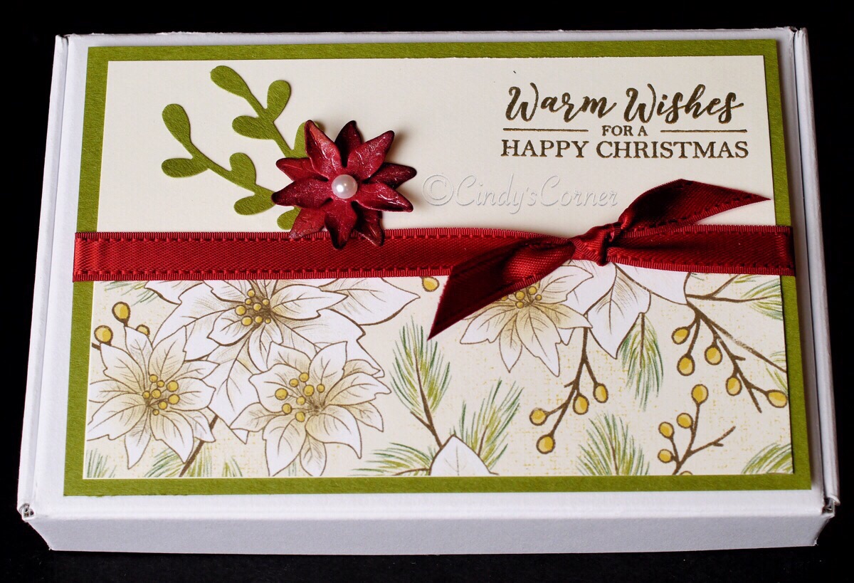 I used a little of the Poinsettia Place DSP to decorate the box. The greeting is from the Best Year Stamp Set, heat embossed in gold.