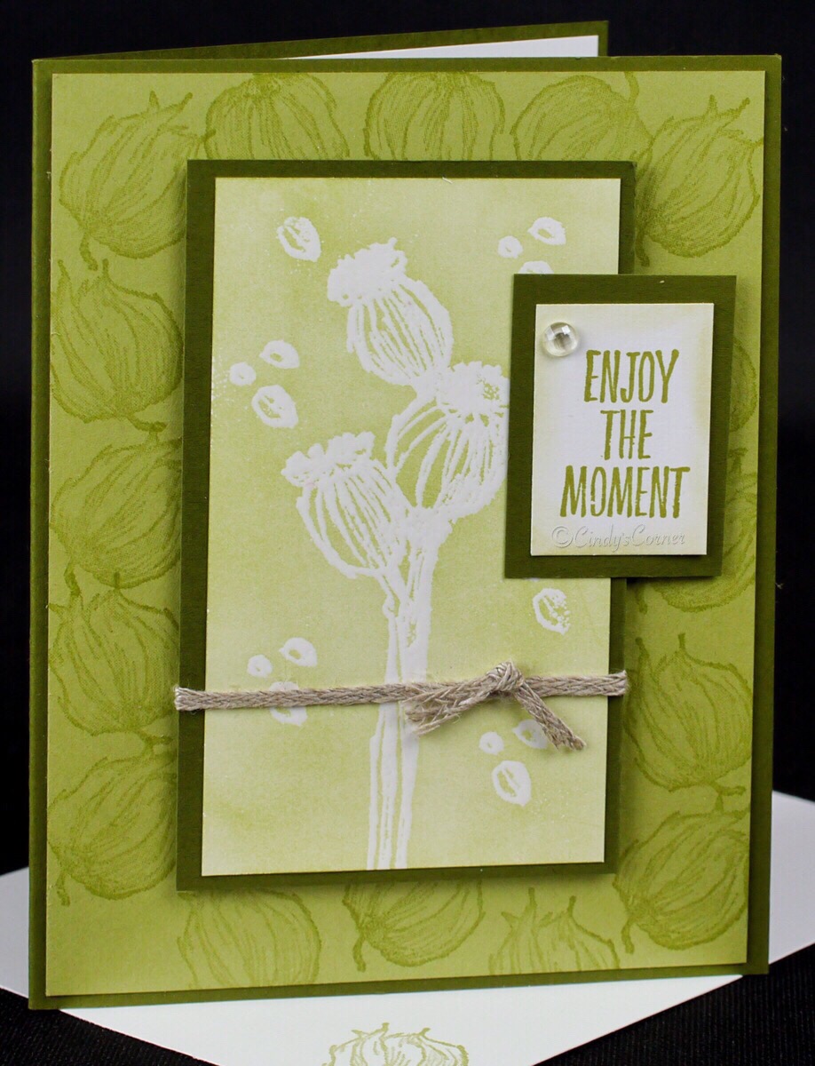 Today’s inspirational card shares a couple of techniques and introduces the new Blending Brushes from Stampin’ UP!. I chose to use the Enjoy the Moment Stamp Set which has a great selection of plant type images as well as some useful greetings.