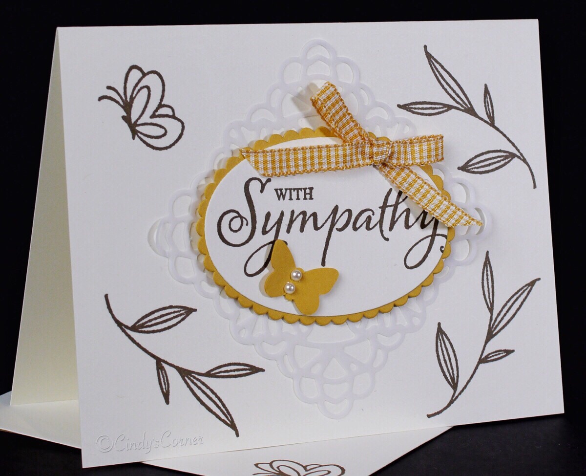 I have used the Touched My Heart Stamp Set so many times, I just love the lovely sweeping leaf images and the 3 greetings. I have used the sympathy stamp for today’s card but the design and colors would work well if you changed out for another.