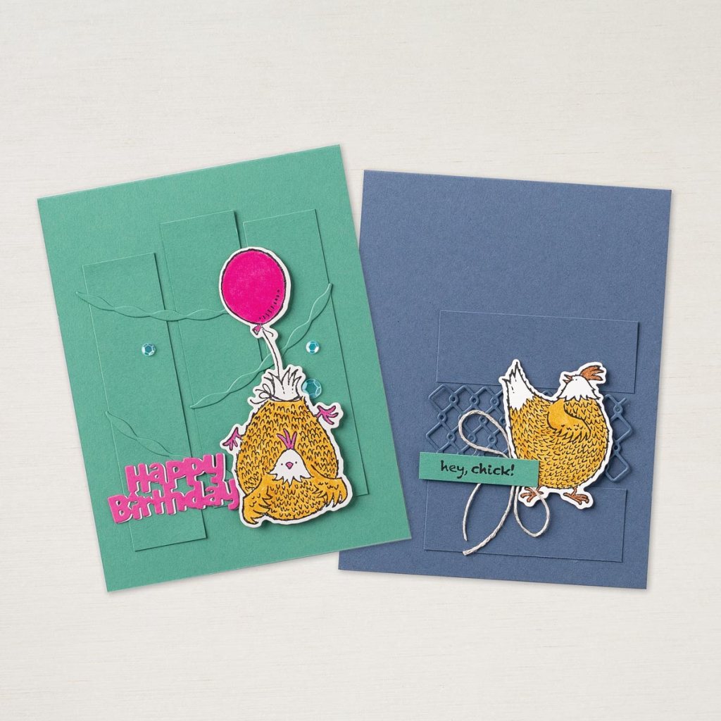 During Sale-A-Bration 2017, Stampin’ UP! was blown away by how much you loved the Hey Chick Stamp Set, so they decided to bring it back, {never seen this happen before} —along with coordinating dies and a completely new bundle created in the same style. These two bundles are only available for a limited time, from February 2nd thru to June 30th! and I am sharing some of the designs using them to introduce them and to inspire you.