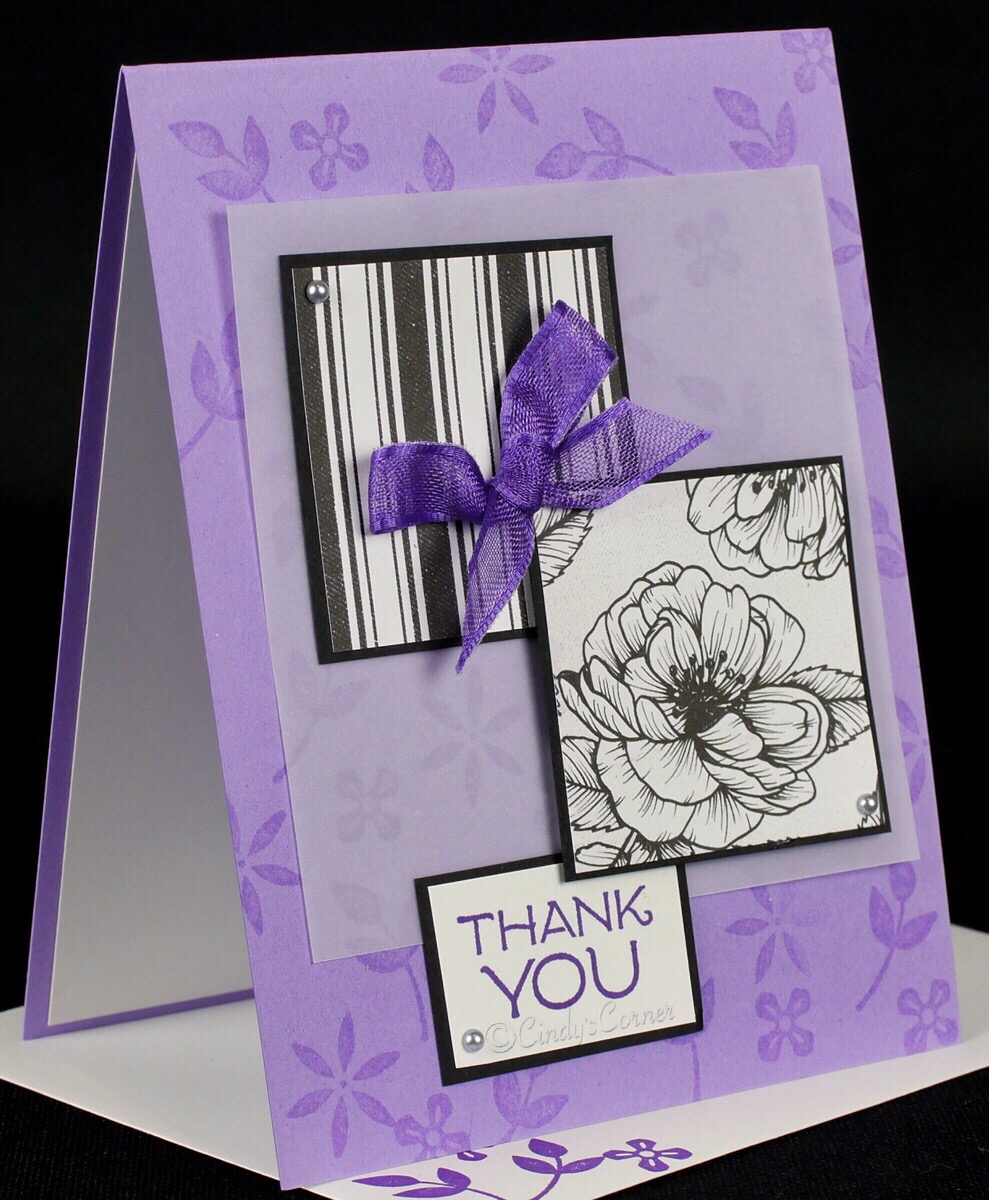 The DSP is attached to the card layers with Multipurpose Liquid Adhesive, then attached to the card base with Stampin Dimensionals. A quick bow from the Gorgeous Grape 3/8 Sheer Ribbon and a smattering of silver Metallic Pearls and we are done! – I love it, how about you?