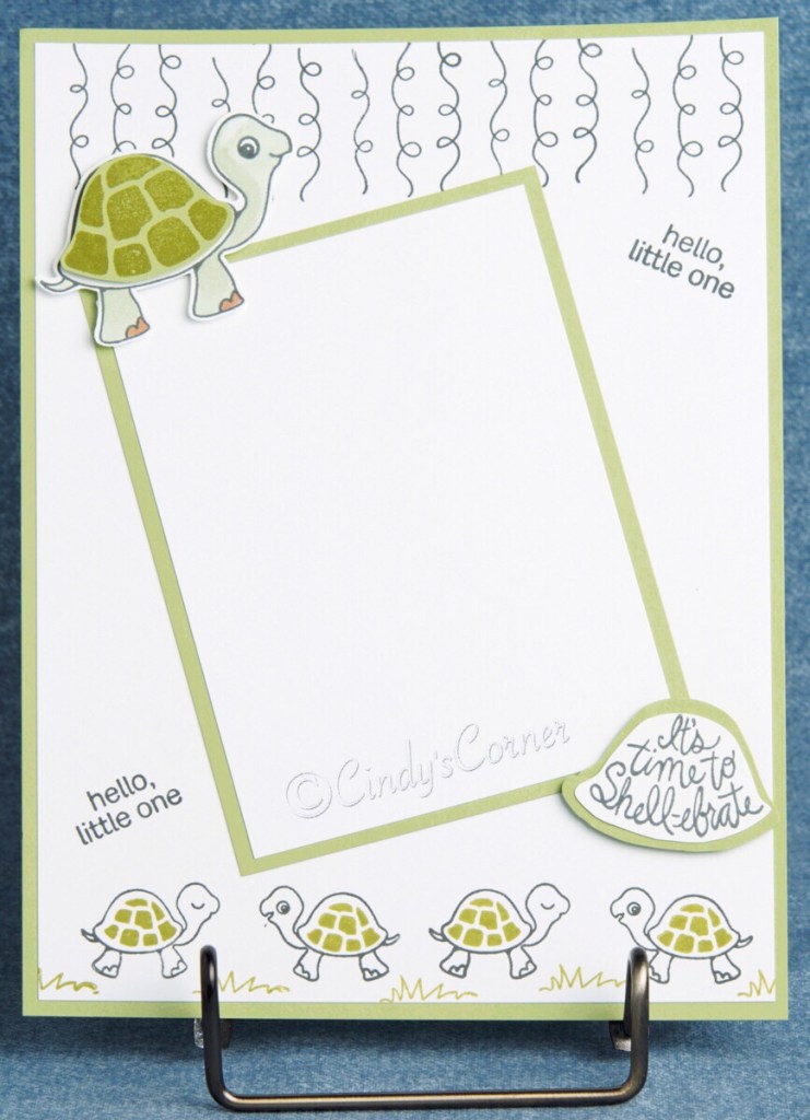 We are about to welcome a new addition to our family, the parents are going to wait until it is born to find out if it is a girl or boy so I have chosen a gender neutral color which works very well with the Turtle Punch I chose to use.