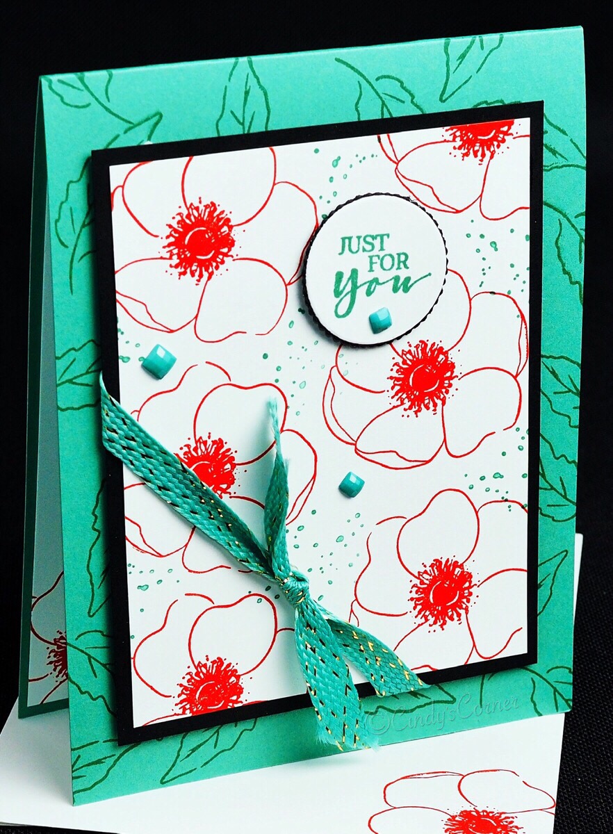 Today’s card certainly has a pop of color combining Poppy Parade with Just Jade and the Painted Poppies Stamp Set.