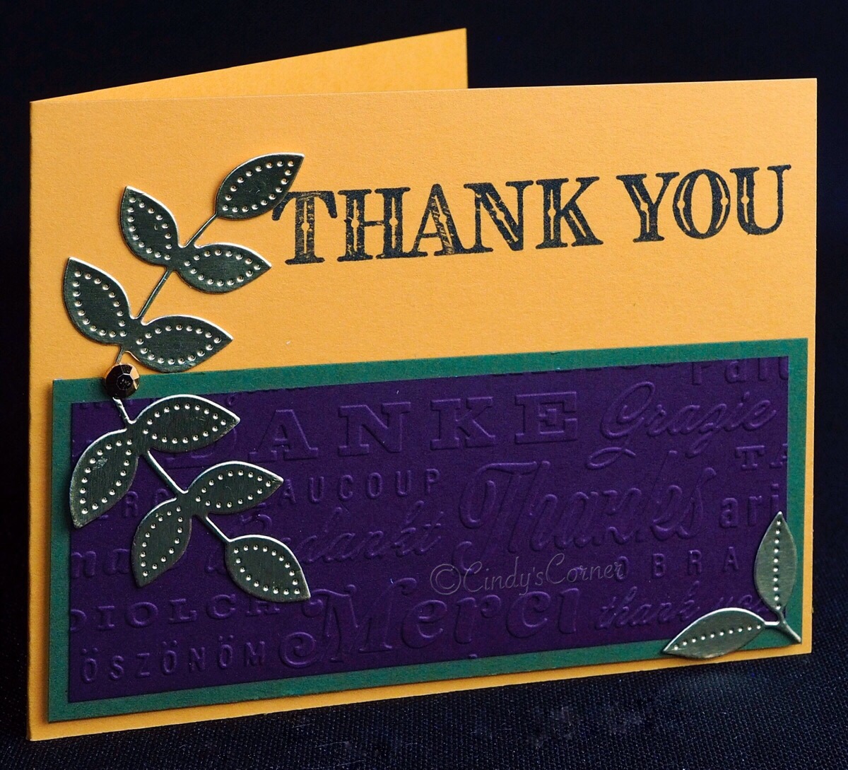 - Layer 2: 5 x 2 Blackberry Bliss Card ~ run thru Mini Cut and Emboss Machine with the Thanks Embossing Folder