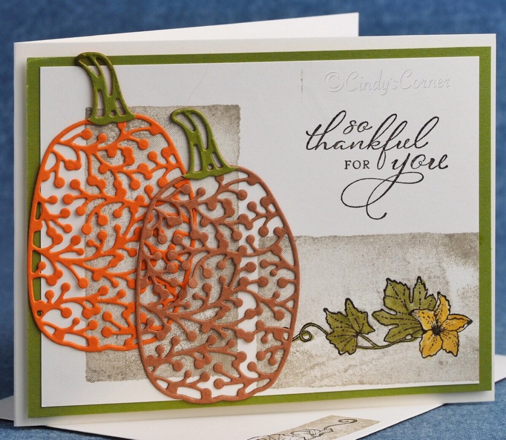 I look at the calendar and realize we are in the second half of August and autumn is on the doorstep! The 2021 Holiday Mini Catalog has some super autumn themed products and colors and one of the choices on my wish list was the Pretty Pumpkins Bundle with the Pretty Pumpkins Stamp Set and coordinating Detailed Pumpkins dies.