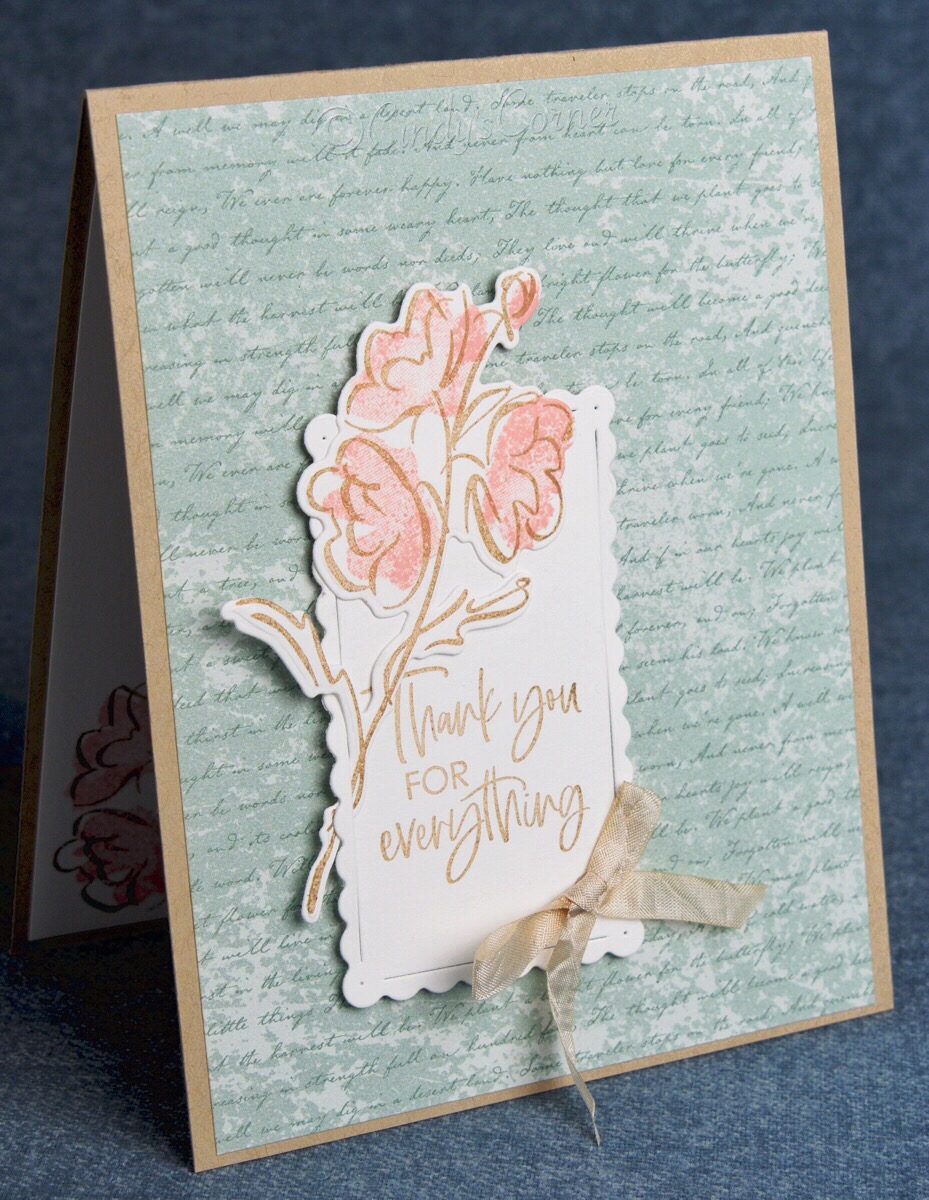 The Color and Contour Stamp Set has a coordinating Scalloped Contours Die Set – I used the dies to cut that cute little scalloped label with a scrap of Basic White Card. The little stem of flowers is also part of the stamp set as well as a die to cut it out. (You can buy the stamp set and dies individually or buy the bundle to save 10%!)