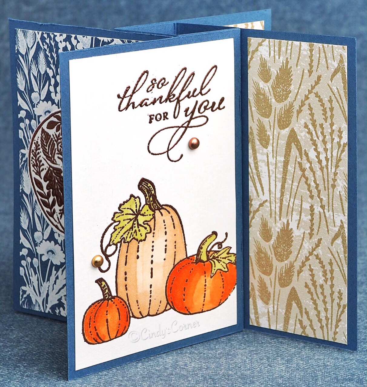 I love a fun fold card and I have a personal mission to ensure I used my decorative paper in my card making. Today’s card meets both of those plus I have a lovely thanksgiving card as a result, plus it will fit into a standard 5 3/4 x 4 3/8 envelope for easy posting!
