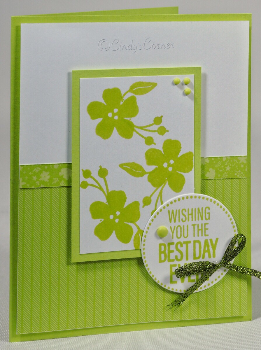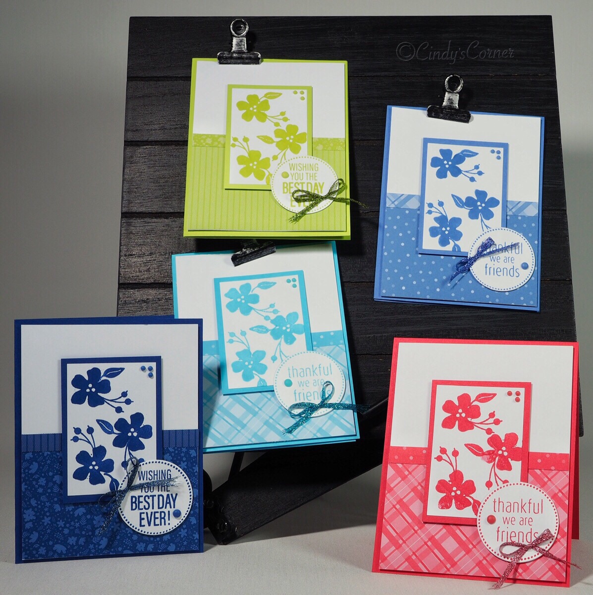 I kinda say this every year – but WOW !!!!!!- I just love the new colors that were launched today – May 3rd. I can see me using these time and time again. I have created a simple card to showcase each of the colors with their coordinating cardstock, ink, ribbon and decorative paper (DSP) . Every year I have an in-color ink and paper share which there is still time to join – check here for more info.