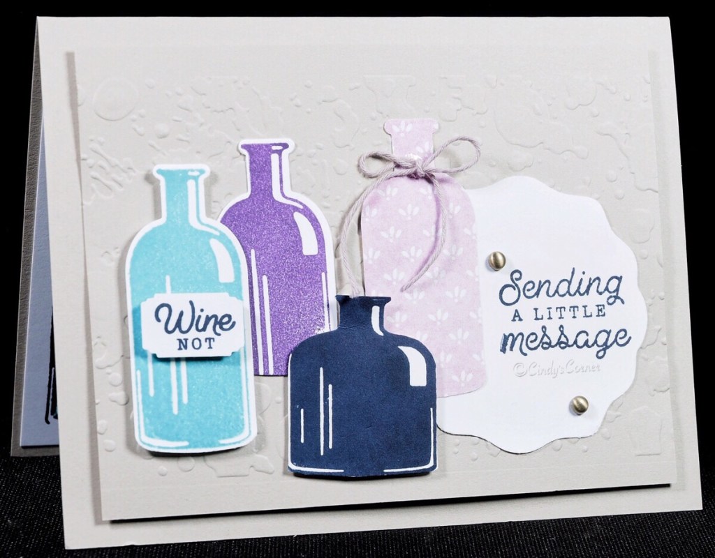 Just a shout out to all the Father’s, Dad’s and Pops out there on your special day. There are quite a few of them in my family now days, the newest being one of my nephew’s who is celebrating his first Father’s Day ! Today’s card uses the Bottled Happiness Stamp set with coordinating Vintage Bottle Punch to send a little message to them all.
