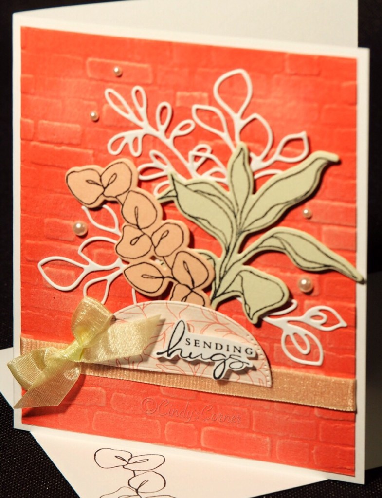 - Layer 1: 5 1/4 x 4 Calypso Coral Card ~ run thru the Cut and Emboss Machine with the Brick and Mortar Embossing Folder