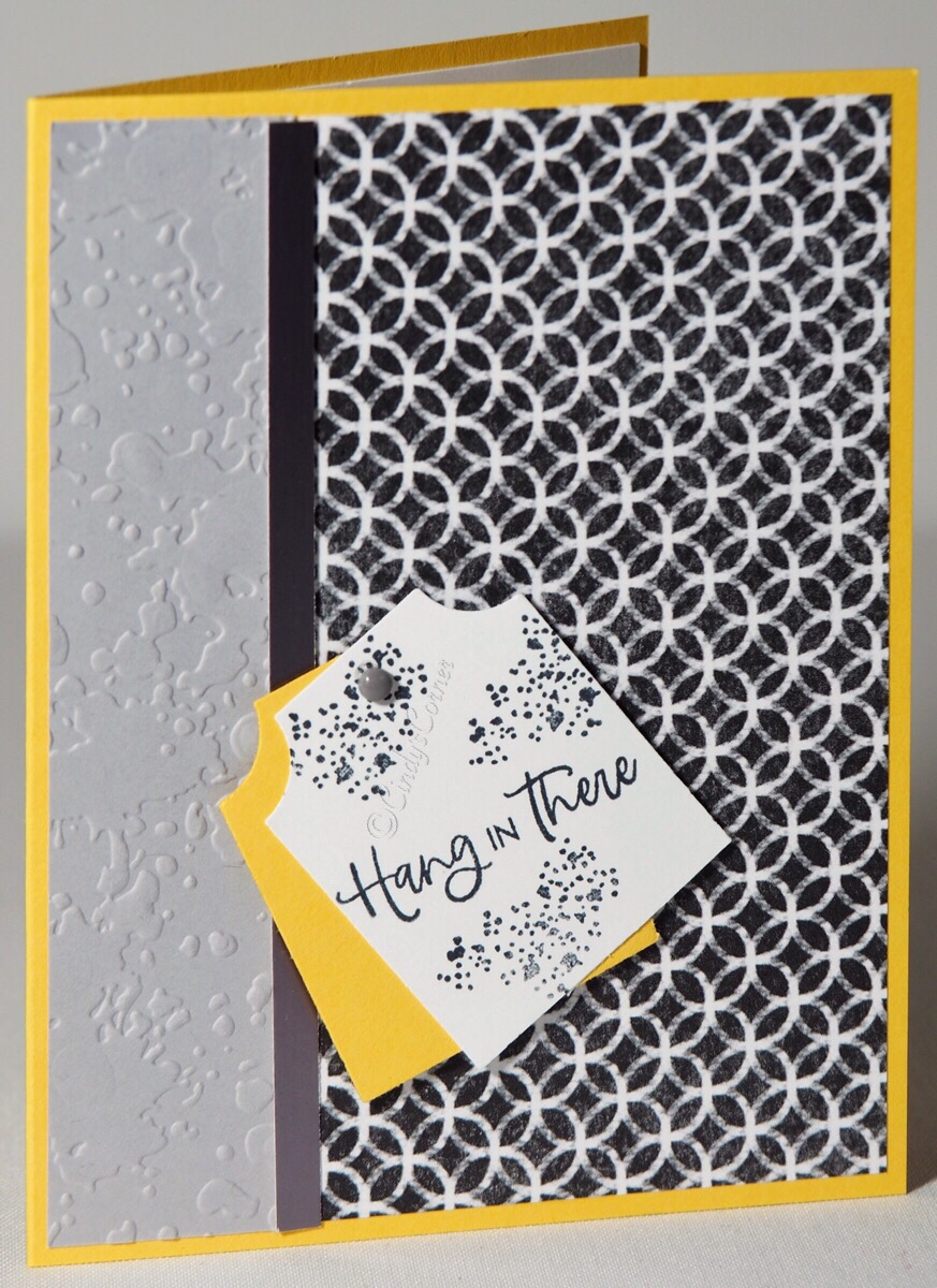 Sometimes we need to send a card to lift someone’s spirits, to just let them know that someone is thinking of them. ‘Hang in There’ is just the perfect thing to say to give them a little lift. Today’s card features the Perfectly Penciled Decorative Paper pairing it with Daffodil Delight and Smoky Slate to make a card that will work for male or female.