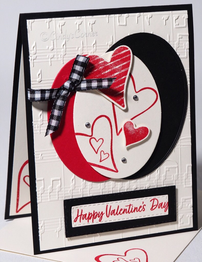When I think of valentine cards I tend to think of reds and pinks – to break out of that box I changed out the pink for black in today’s card and it did make a dramatic card, which I think would make a really good card for the fellas in our lives!