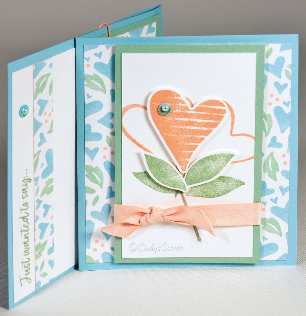 Each month I take part in a Scrapbook hop, I recognize not everyone is into scrapbooking so I try to take some elements from my layout to create a card to show how Stampin’ UP! products can be used for both card making and scrapbook pages. Check out the original scrapbook page I took the pull out section of the page and created this simple fun-fold card which would be perfect for an anniversary, birthday or valentine’s day.