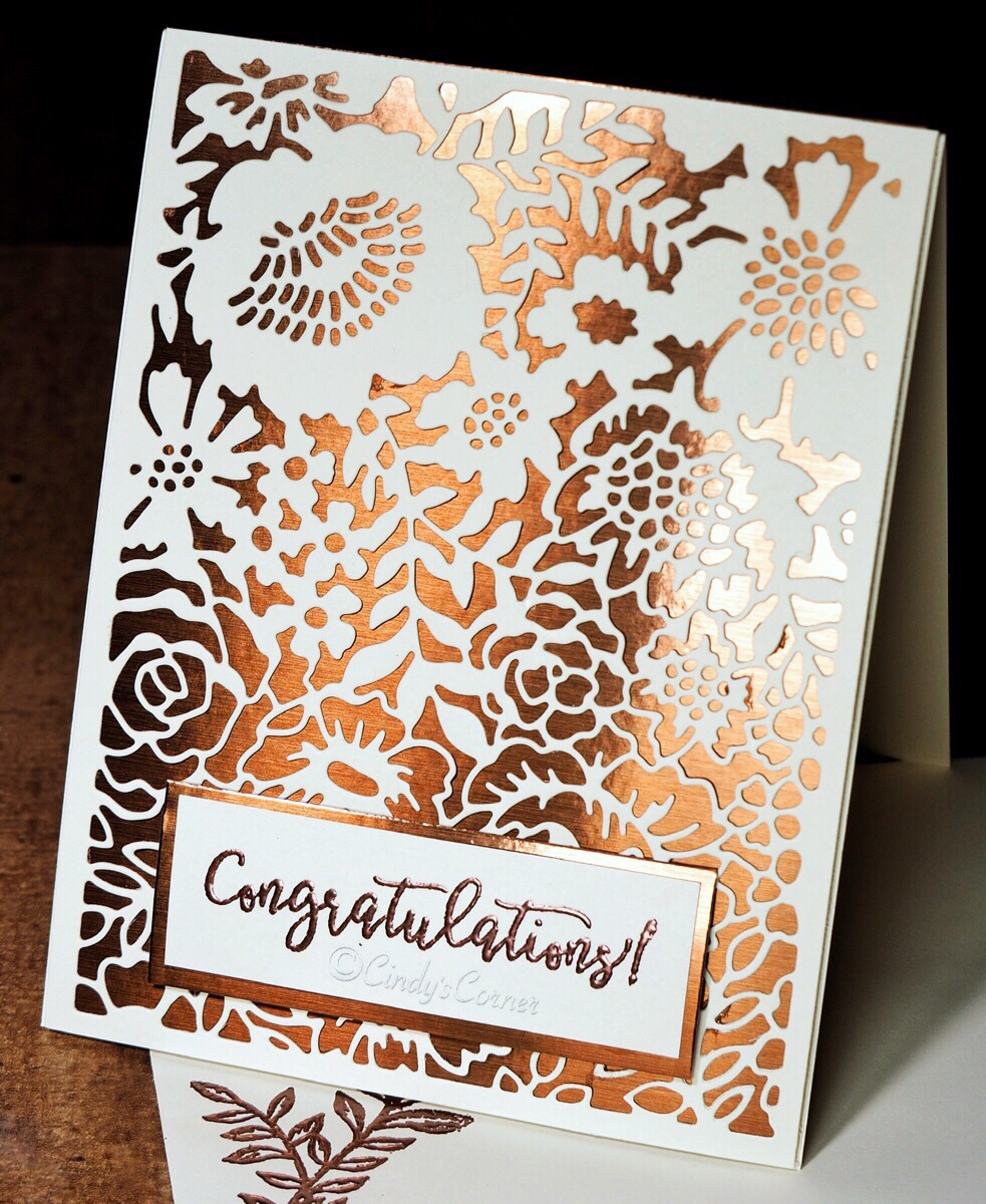One of the ladies in my Stampin’ UP! team recently promoted to Bronze Elite, it was my absolute pleasure to make and send a card to celebrate her achievement. I reached for the Copper Foil straightaway and paired it with Very Vanilla Card and the Two Tone Flora Dies. I was really thrilled with how it turned out and hope she liked it as well.