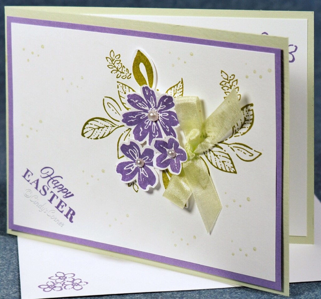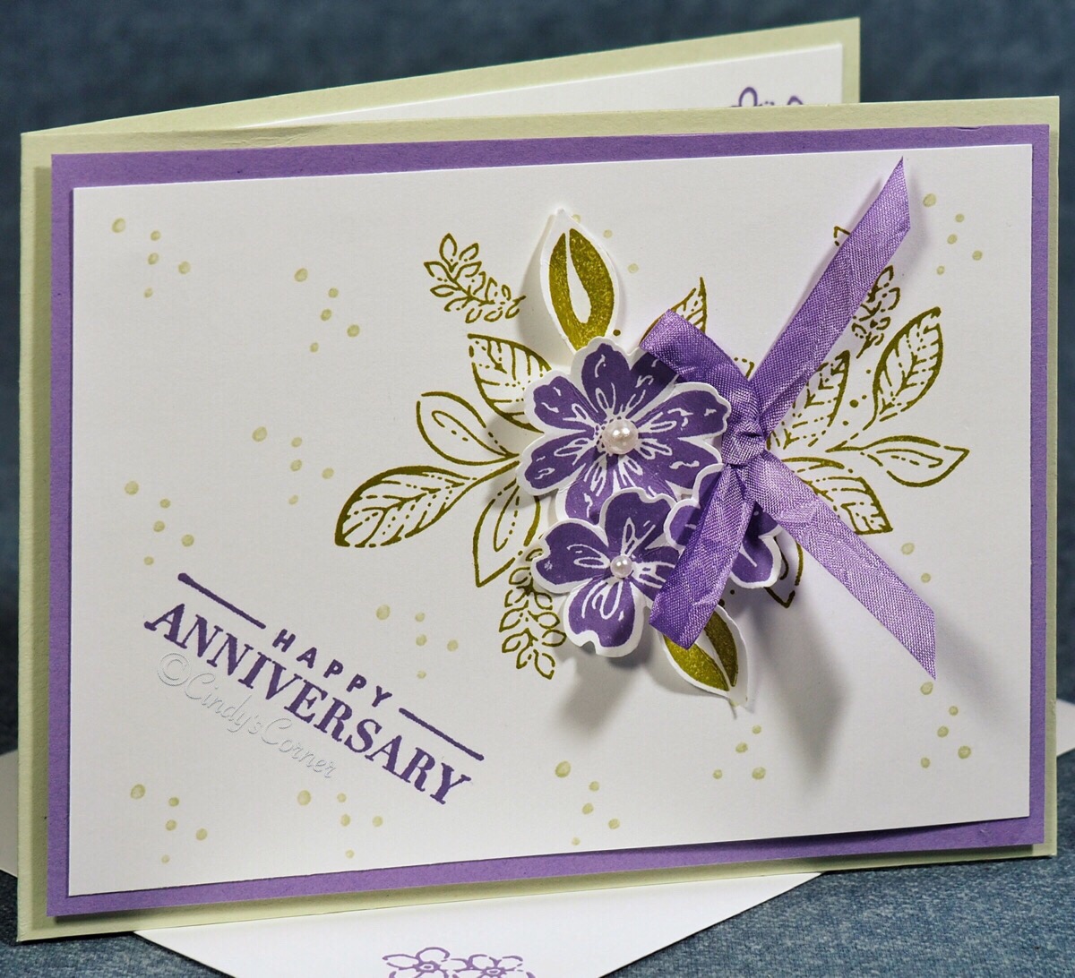 Today’s card uses that layout and you will probably recognize it from previous posts. I have combined the Petal Park Stamp Set with the coordinating punch with the Celebrating You Stamp set for my greeting along with one of my favorite subtle color combinations to show the same layout for an anniversary card and one for Easter, there is also a video tutorial to follow along with 🙂