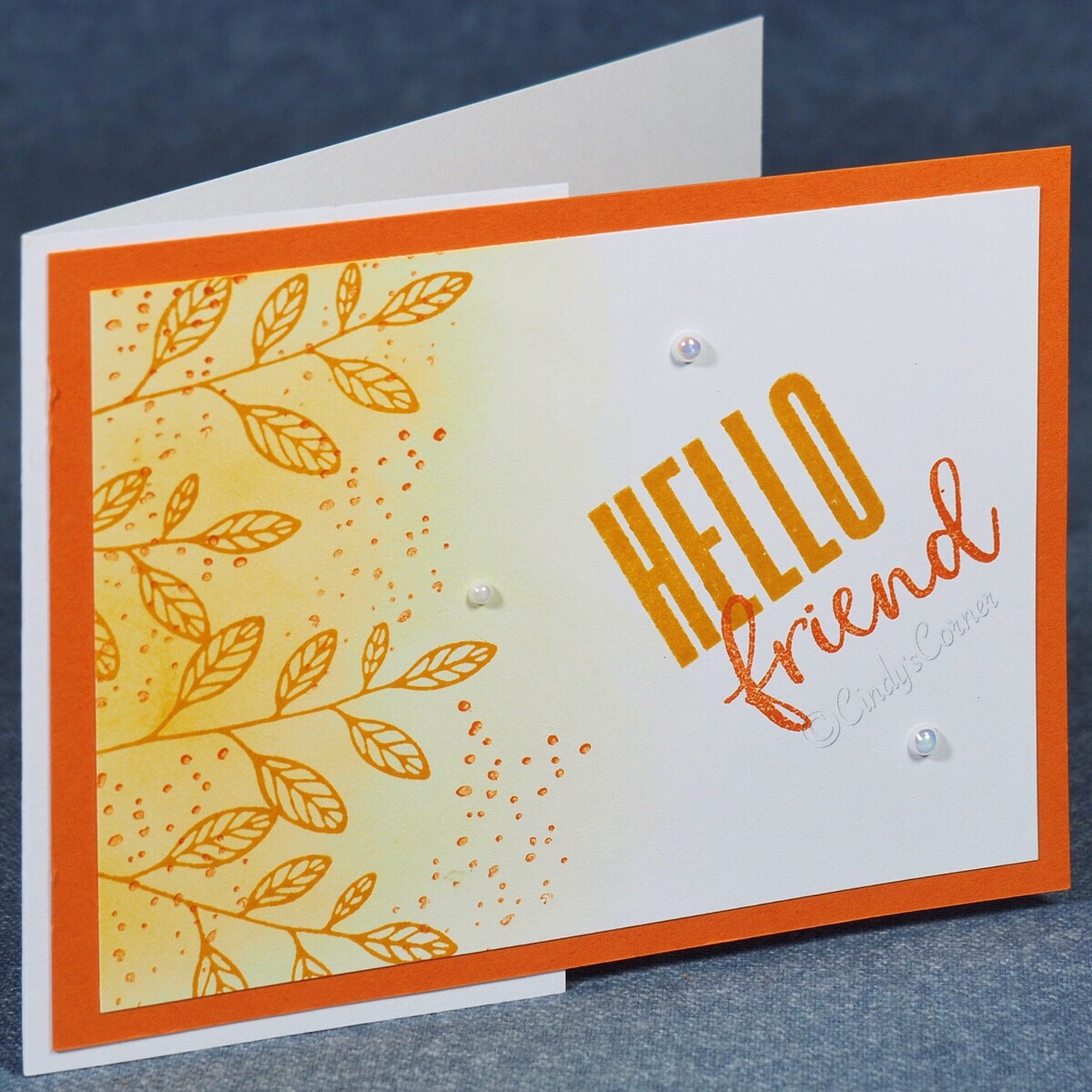 I tend to turn to Pumpkin Pie in the run up to Halloween but it truly is a beautiful orange for this bright and sunny card. I used my Blending Brush to apply some Crushed Curry Ink to one side of the Basic White card taking care to fade it out toward the center.