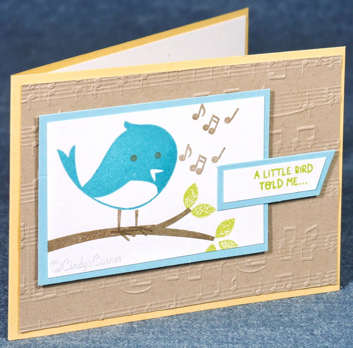 The stamp set is Sweet Songbird which has the coordinating Songbird Builder punch although I have not used it in these projects. I started by stamping the branch then added the birdy feet then added the body, doing it this way meant that all the pieces fitted together to make it look exactly perched on that branch!