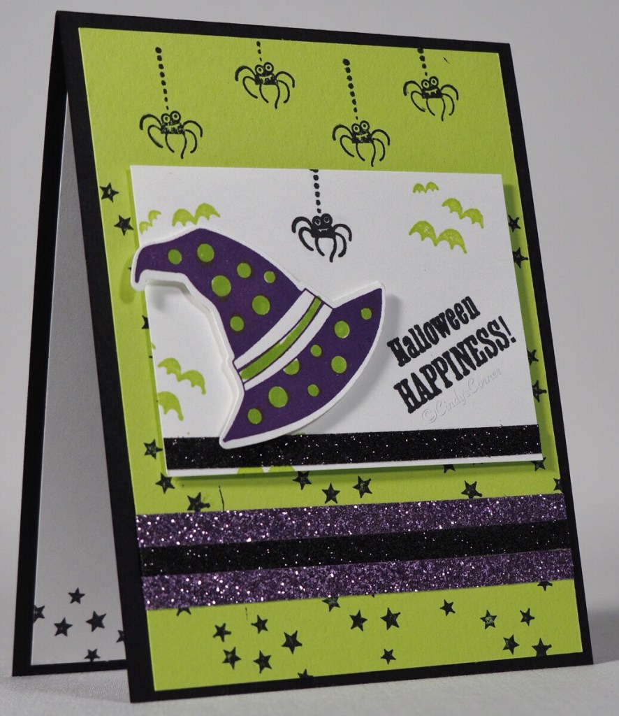 The stamp set is Bewitching, which has now retired, it was extreamly popular as it had a coordinating punch to cut the hat.