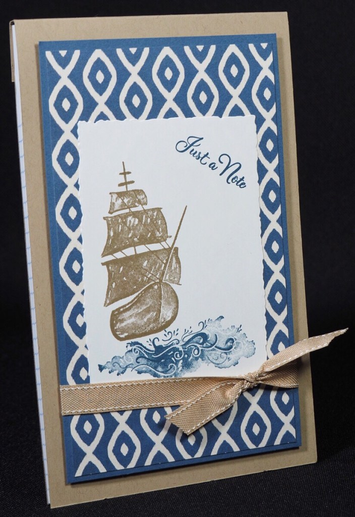 I used the On the Ocean Stamp Set and Go To Greetings for the greeting along with a length Burlap Ribbon for decoration