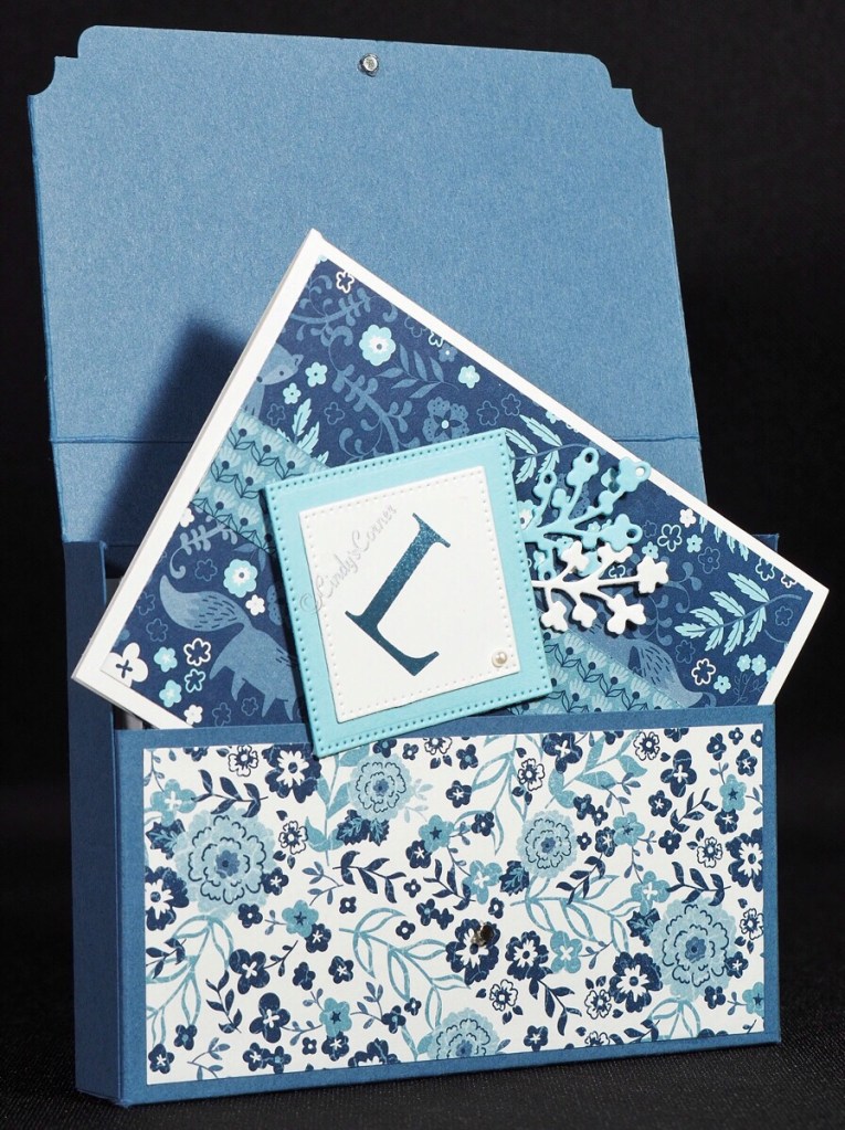 The Countryside Inn decorative paper just screamed out to be showcased on this 3D project. I turned to my favorite Go To Greetings Stamp Set for the greeting and the Classic Letters Stamp Set for my monogram. Rather than a monogram you could always use other small images as I have in my video, which is from the Timeless Arrangements Stamp Set