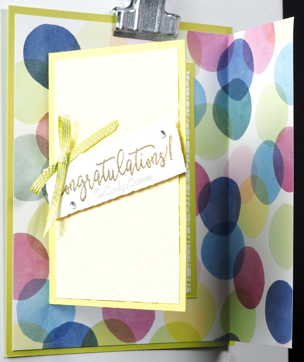 Today’s card is a celebration card featuring a little heat embossing and a fun fold
