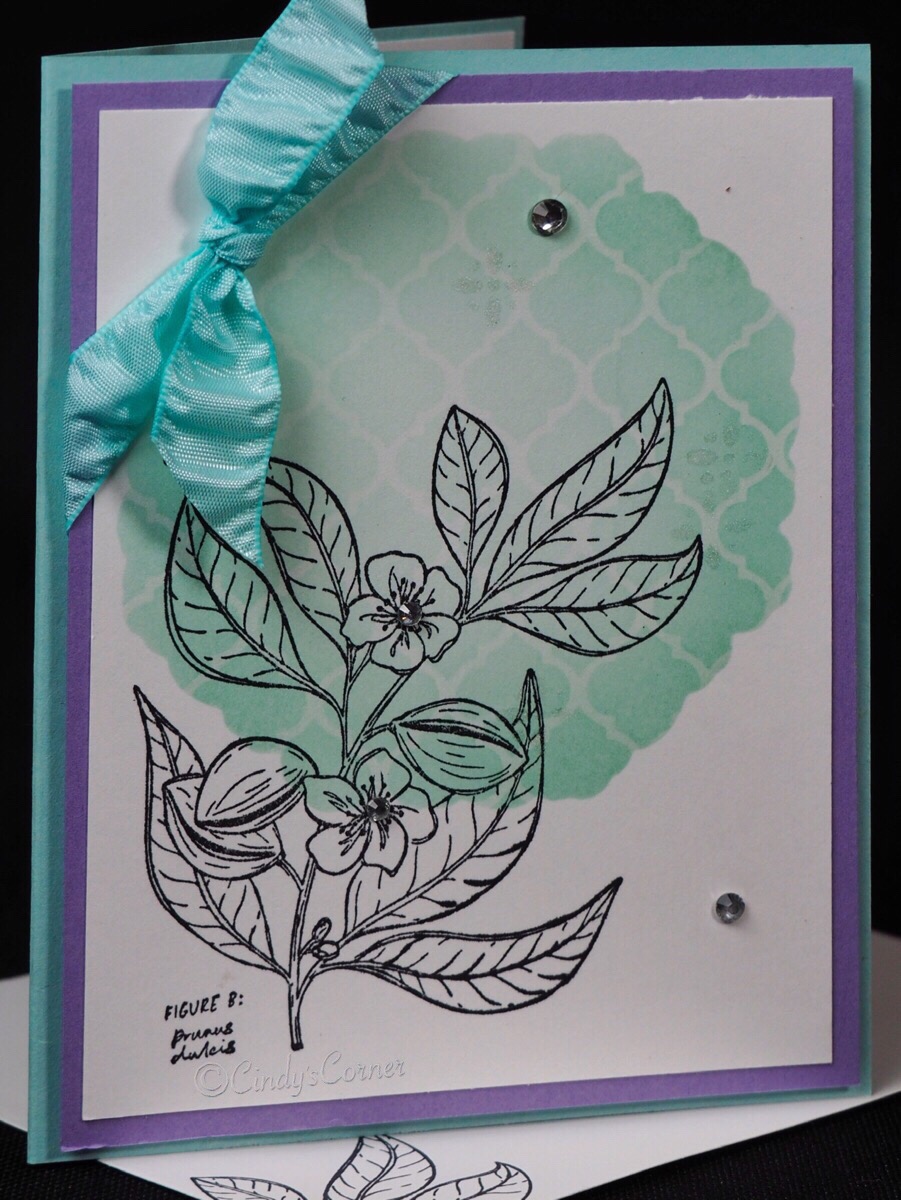 I used the Lovely & Sweet Stamp Set for that beautiful silouette and simply added a few Basic Rhinestone Jewels and the crinkle ribbon for my embellishments. I love the simplicity of this technique