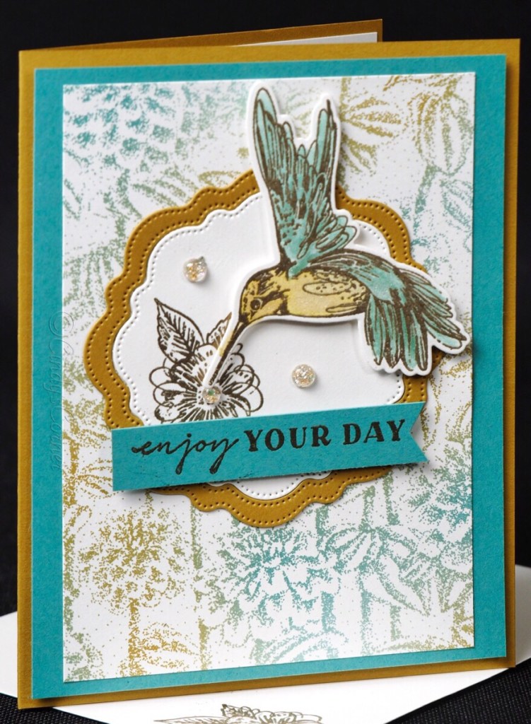My first thought was butterflies but after thinking a bit more I have decided to focus on humming birds. We get them in our garden here in North Texas as we are on the migration path from their winter to summer homes. It also features one of the exclusive Sale-a-bration freebie decorative paper packs (click here for more info) Check out the video below where I share how to create the pretty frame.