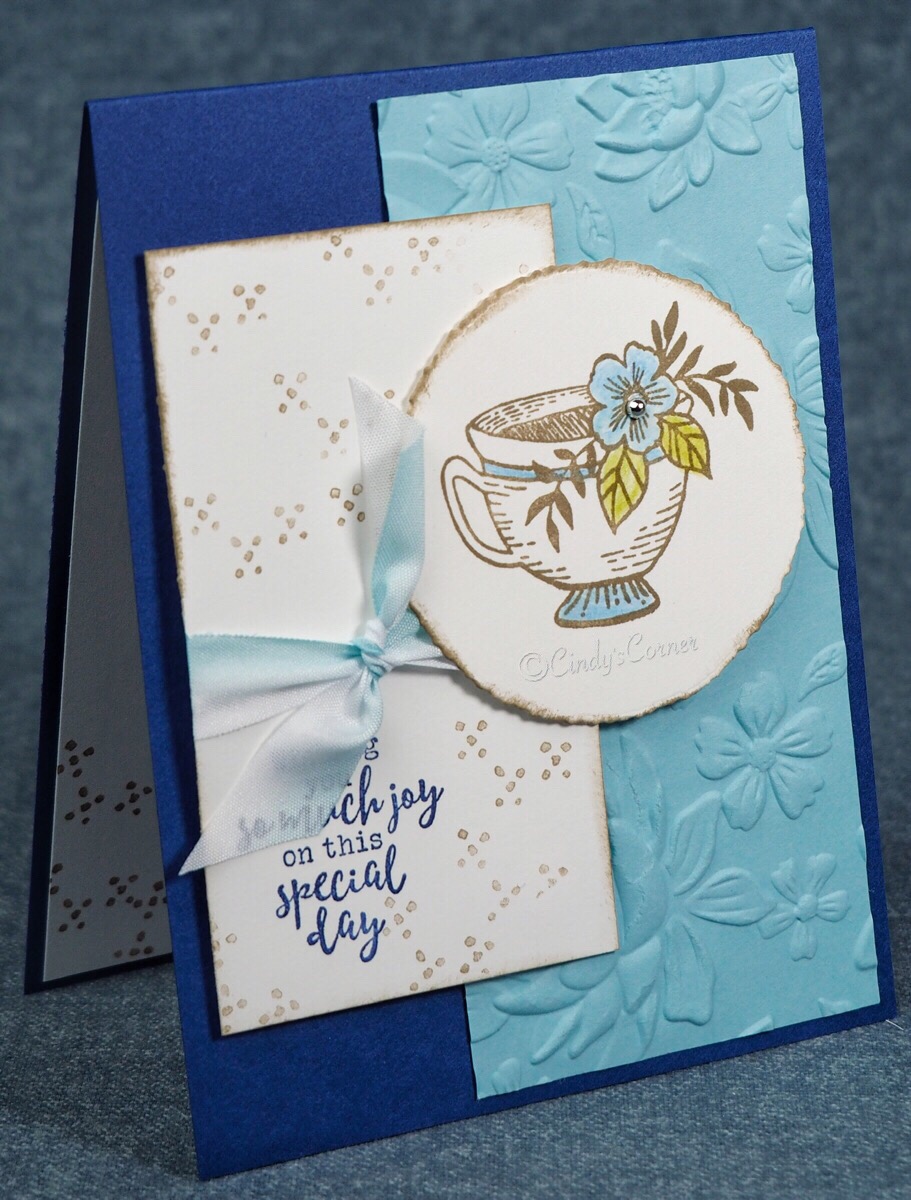 The Everyday Details Stamp Set has 3 very different stamps perfect for focal points – it also has a ‘dotty’ stamp and if you follow me on YouTube as well as here on my blog you will know I just love a ‘dotty’ stamp to fill in empty space and add texture! I broke out my Watercolor Pencils to make highlights on the teacup and then some sponging around the edges using Sponge Daubers.