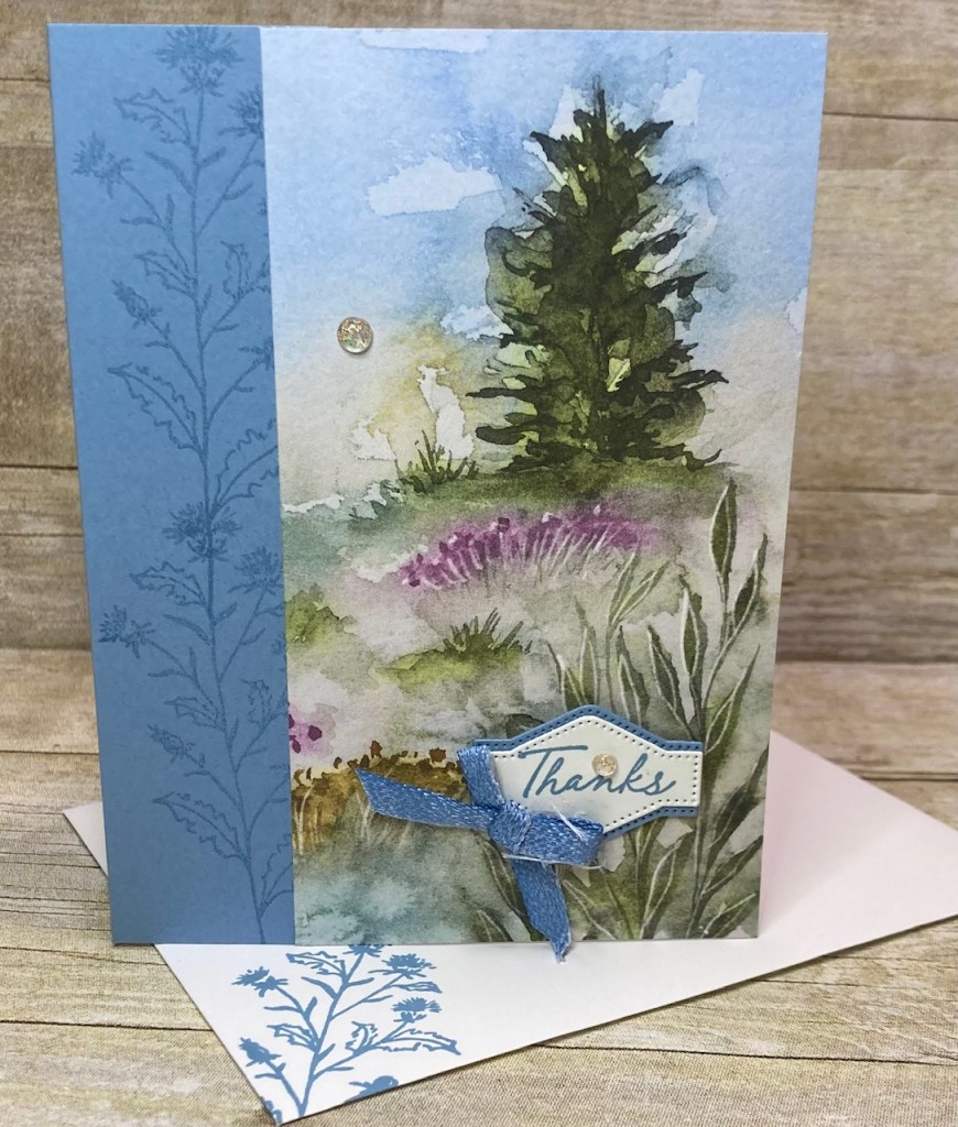 The Stampin UP! decorative paper packs are double sided and often times it is difficult to decide which side of the paper to use, today I share a card with a video on a way to show both sides, featuring the Thoughtful Journey decorative paper and the Thoughtful Wishes Stamp Set
