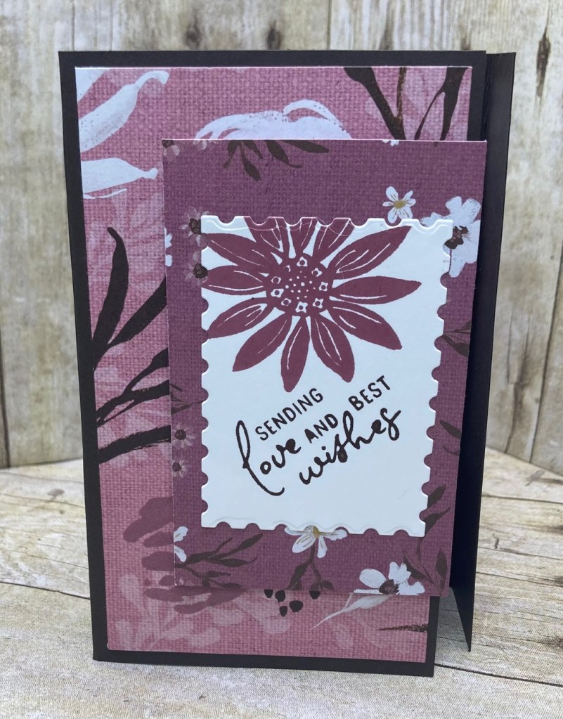 Decorative Paper Packs are a wonderful source of inspiration for color combos and the Wildly Flowering Paper is no exception, pairing Moody Mauve with Early Expresso together with a quick and easy fun fold.
