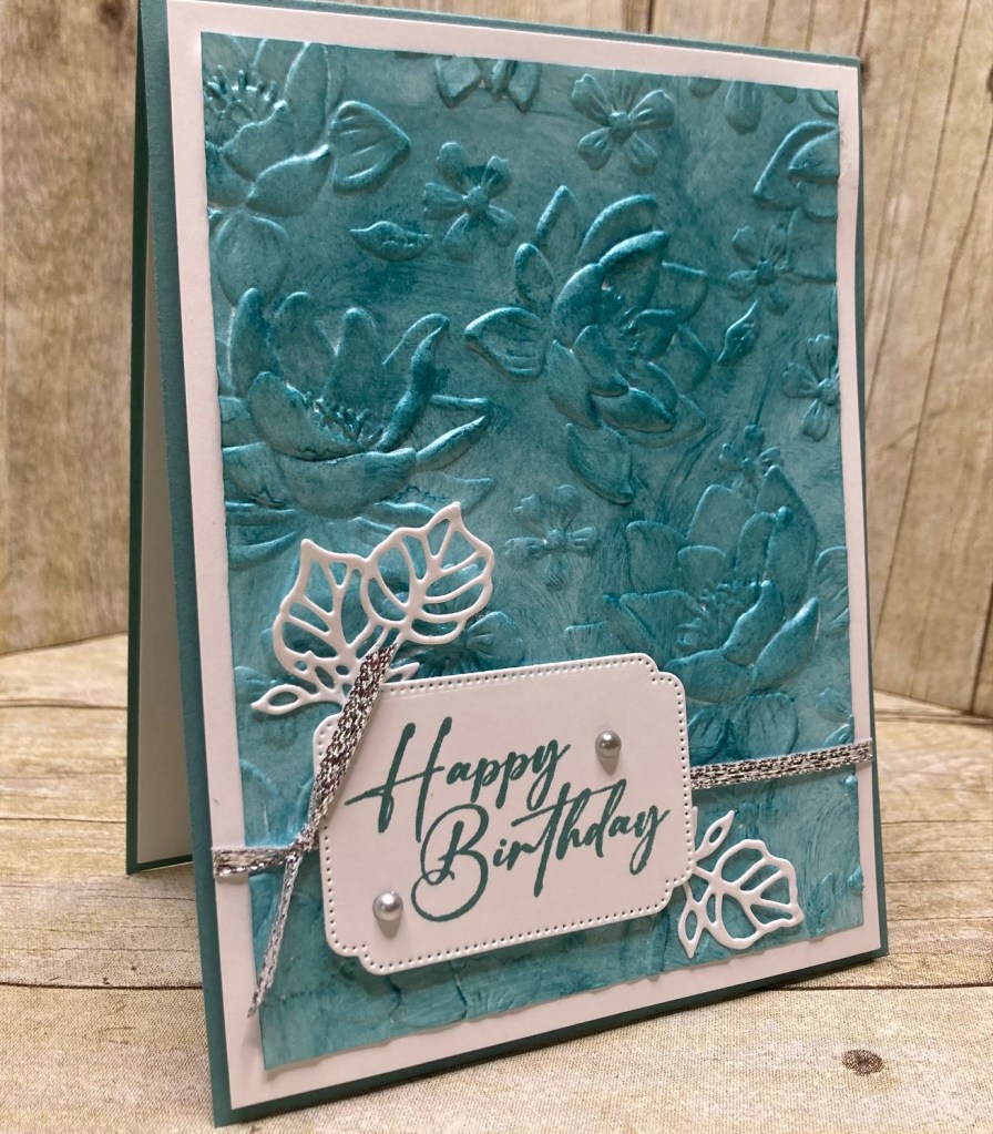 The Layered Florals Embossing Folder takes center stage with the Enamel Effects. The greeting is from the Unbound Love Stamp Set and cut with the coordinating Dies.