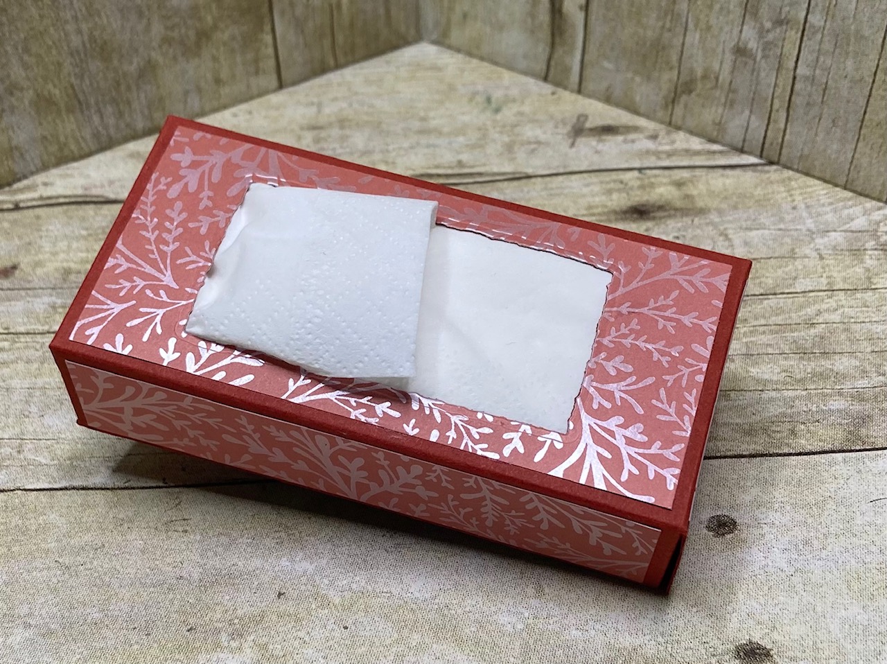 What a great way to dress up a simple packet of tissues! and a great item if you do craft fairs. I took a simple pocket packet of tissues, some card and decorative paper and better yet …… the box is refillable!!