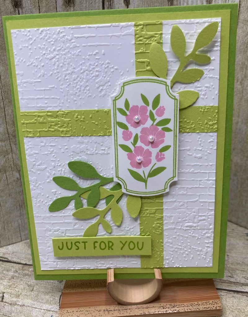 The Labeled with Love Stamp set has a super collection of images and greetings that are very versatile, from birthday, to thanks, to friend, to partner!!! I chose some nice bright cheerful greens with a little pop of pink for today’s card.