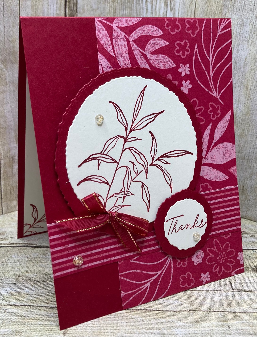 Today’s color choice is inspired by one of the new ribbons in the Sept – Dec mini catalog, the 3/8 Cherry Cobbler & Gold Ribbon, it is just gorgeous (& will be perfect for your Christmas Cards!)
