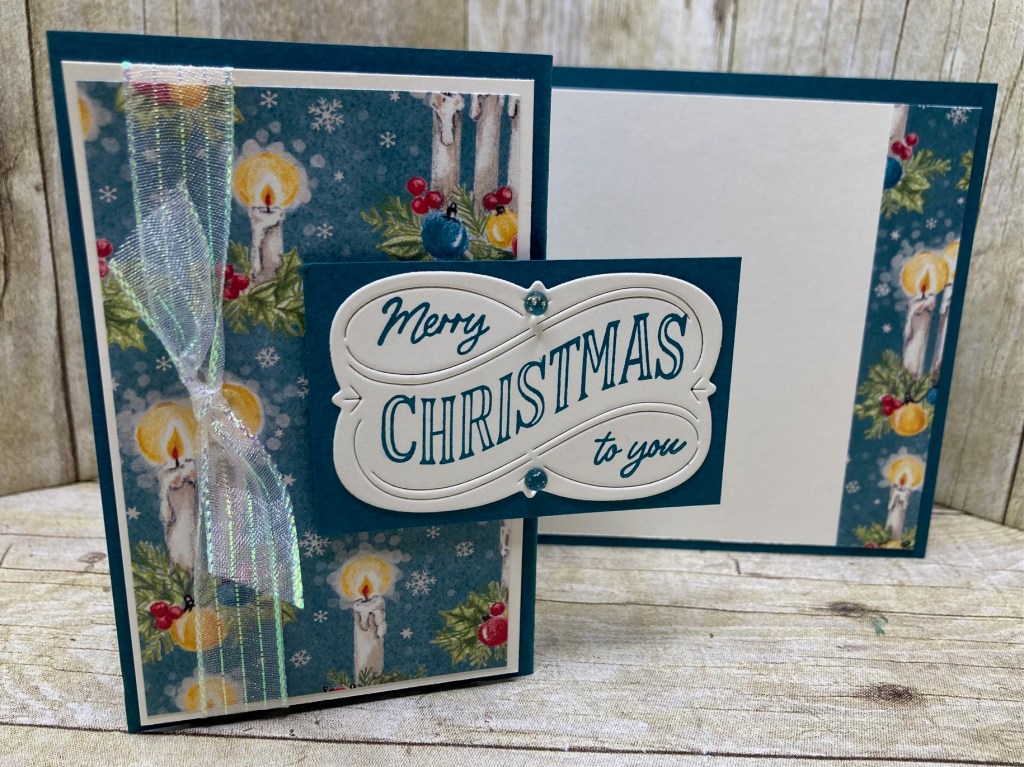 The weather has continued to cool here in North Texas, although they are forecasting 90F over the coming days, but no rain in sight nor has there been any for the last 4 weeks!!! I am sharing another Christmas themed card today, with a simple ‘lazy Z’ fold perfect for show casing some decorative paper.