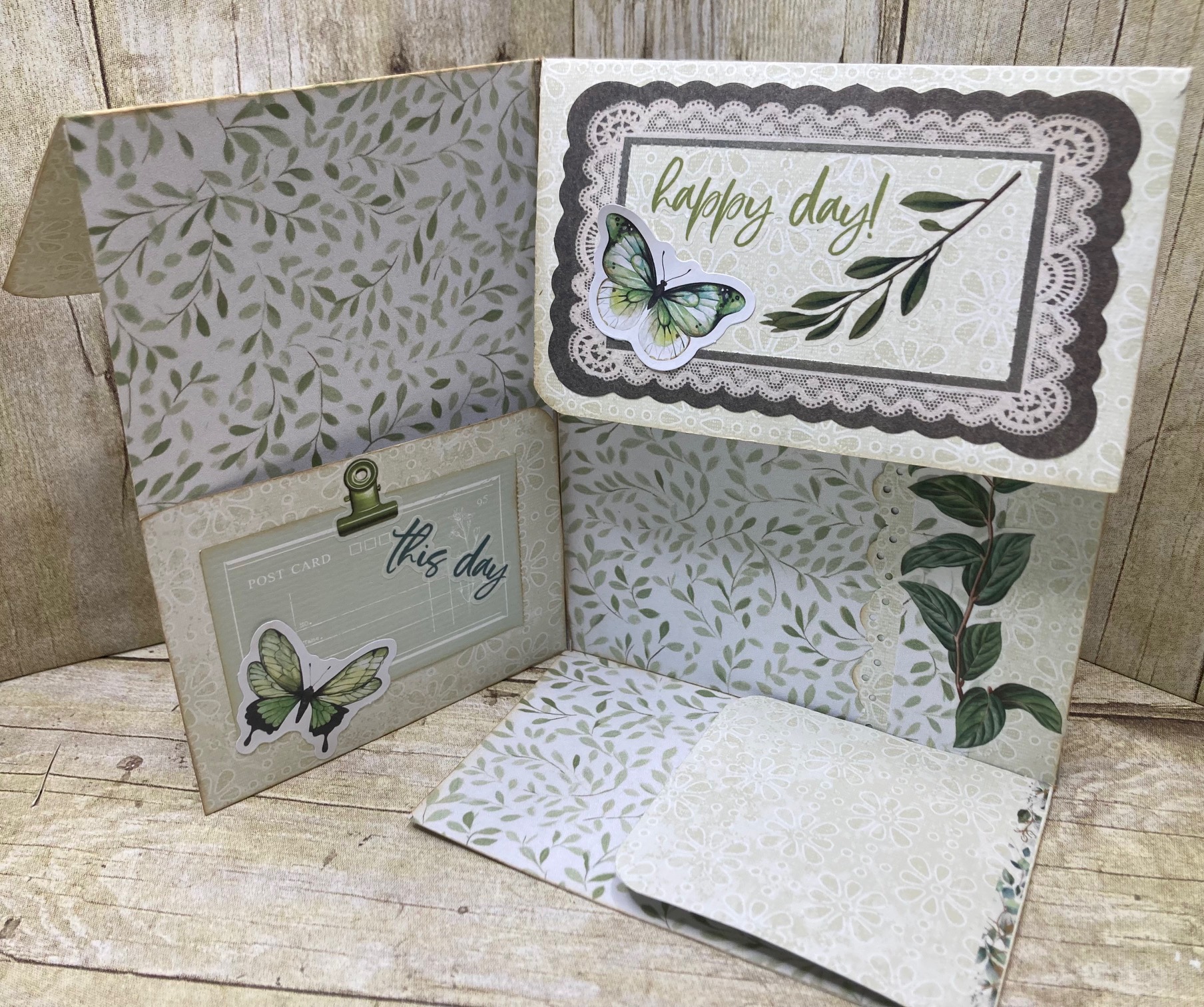 Just to remind you that a junk journal consists of sets of pages, generally called “signatures”, they can simply be some sheets of paper folded in half then attached together booklet style or something a bit more adventurous and I decided that I was going to share some of the more adventurous signatures I am creating for my leafy green foliage themed journal.