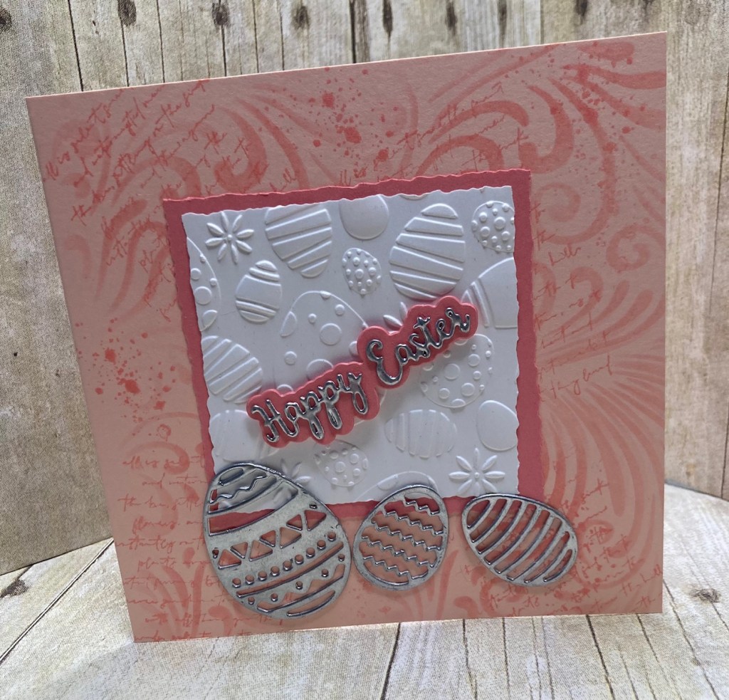 - Layer 2: 3 x 3 Basic White Card ~ embossed with some cute Easter eggs