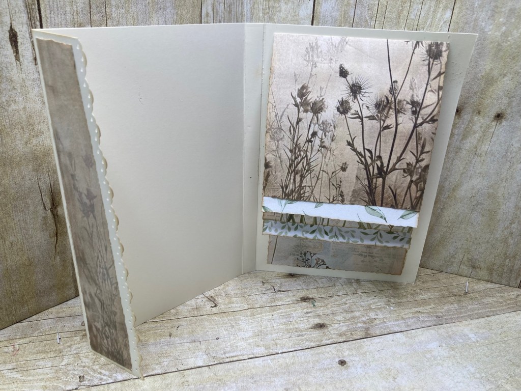 I made my first 2 journals to chronical a 3 week trip to Australia and the South Pacific in 2023 and our 31 day cruise around the North Atlantic from Amsterdam to Miami in 2024. They made a great place to put photos and other bits and pieces we picked up as well as my thoughts as we had each experience………. and I look back on them very fondly. I am not sure what I shall use this journal for ~ I wanted to experiment with different kinds of signatures (pages) with a foliage theme. (check out the last pages I shared)