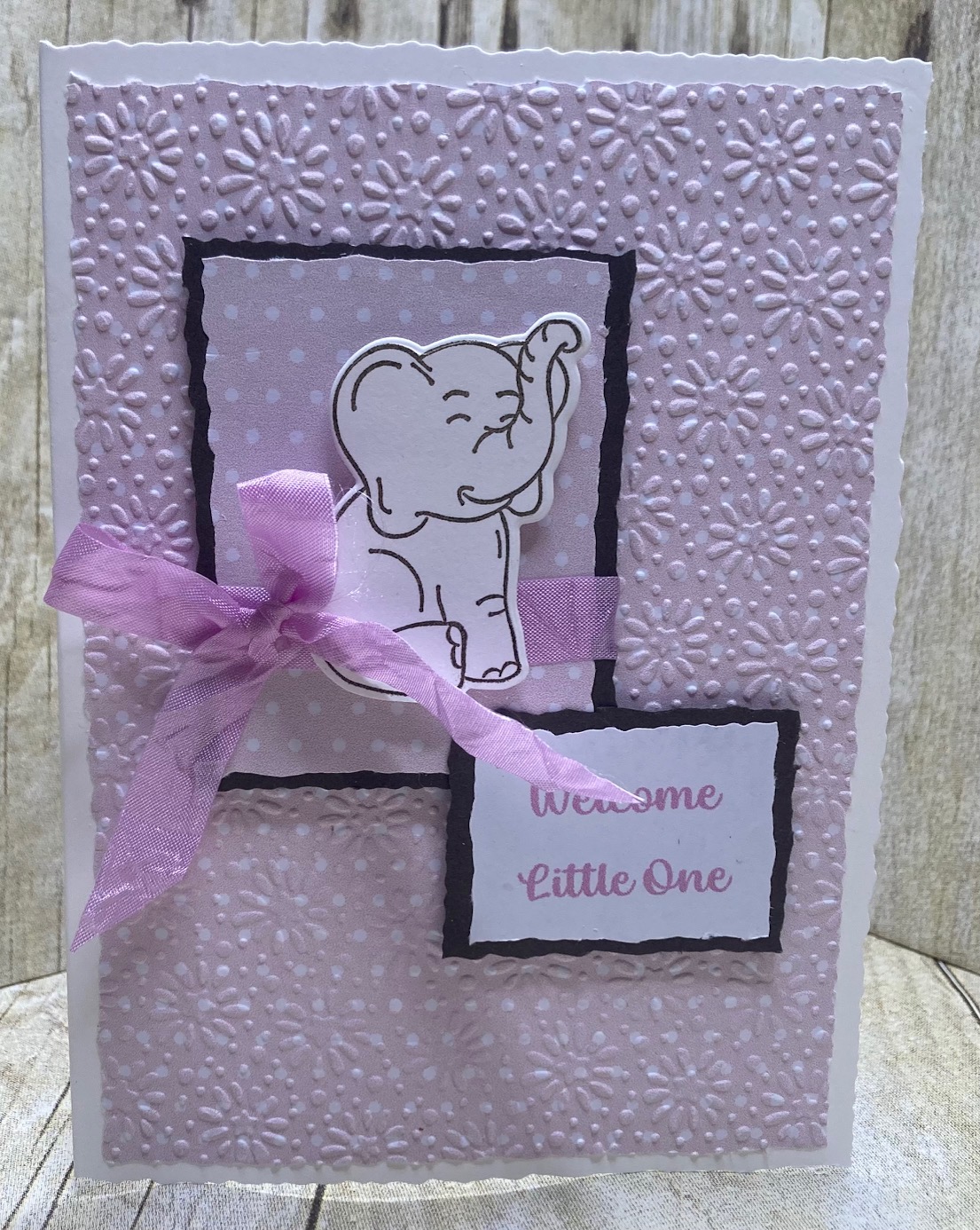 We had another member join our family at the beginning of February, a great niece for me who shares her birthday with her aunt, the same sweet girl who made me an aunt a little over 40 years ago! As I am still working with very limited supplies I downloaded some pretty pink decorative paper and found a cute little stamp / die set in a local hobby store. I think it came out OK!!!!