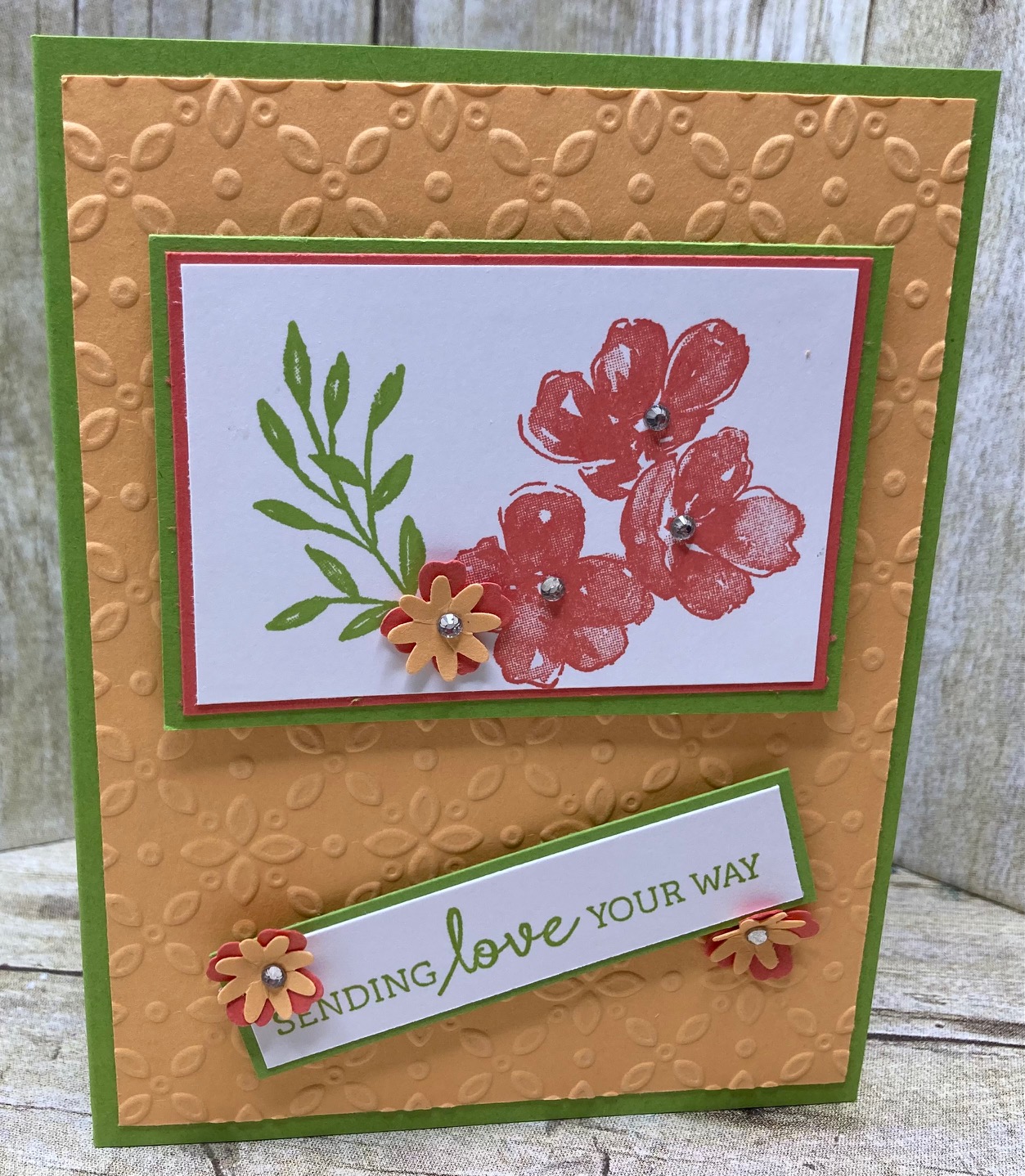 The stamp set is Regal Floral Stamp Set, with a few Basic Rhinestone added for a little bling.