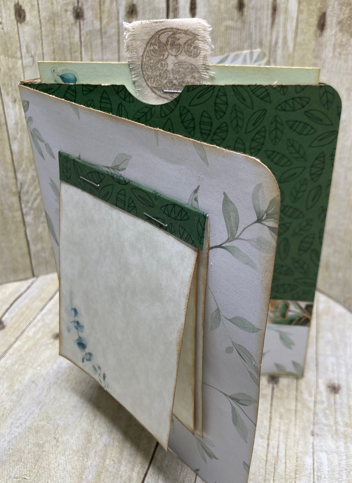 The theme of this journal is green foliage and I decided to use it to experiment with different designs of signatures (pages) This triple pocket one is probably the final one before I start to think about a cover and binding. I have also been pulling together a few embellishments as I go along and have been sharing those as well and will continue to as I work on them.