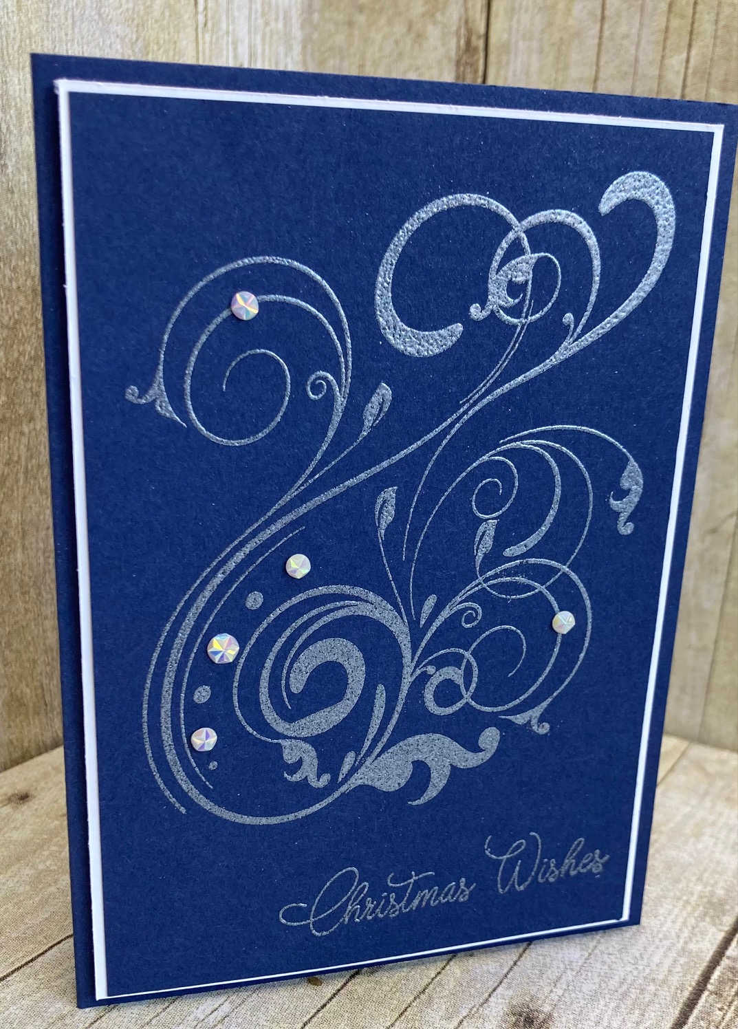 In my quest to try new products I came across White Pearl Embossing Powder which I am using on my card today. As you will see from the video it gives a very soft and elegant finish along with the swirly stamp I chose as my focal point.