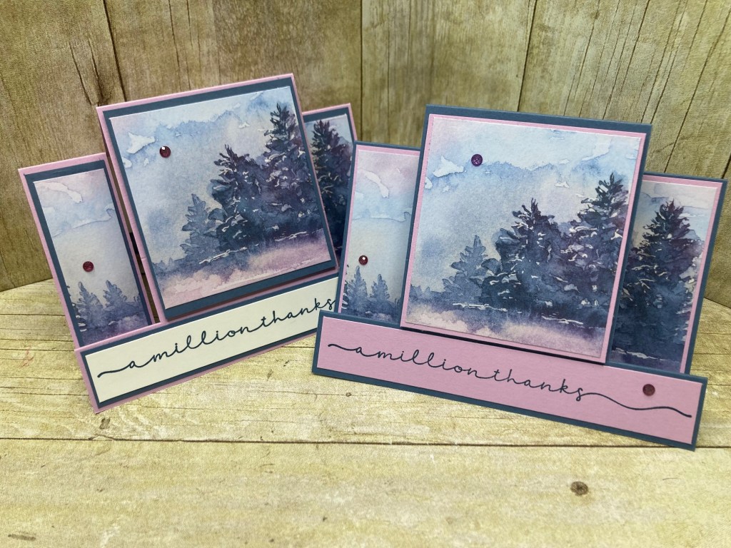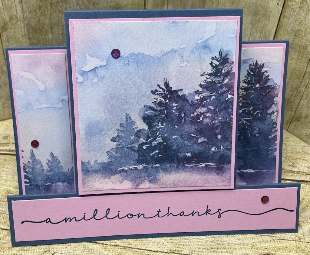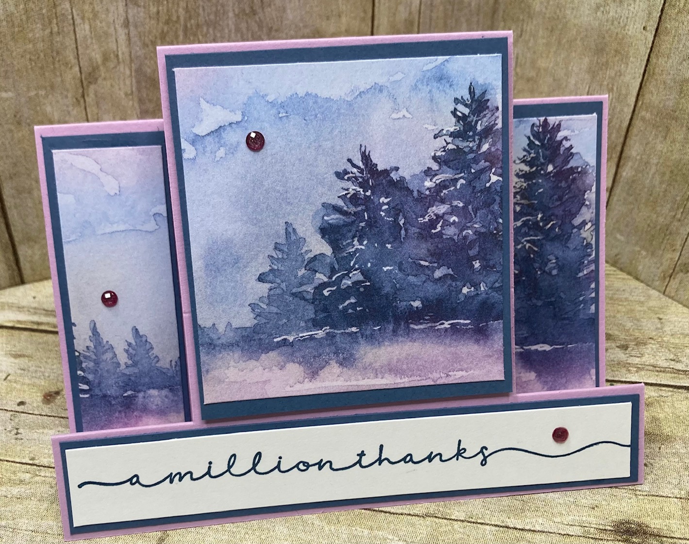• Side Panels: 2 pieces 3 1/8 x 1 1/8 Misty Moonlight or Fresh Freesia Card & 3 x 1 Decorative Paper