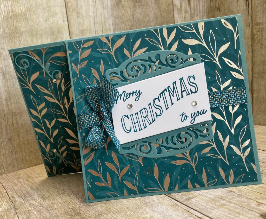 We don’t have a specific theme ” anything goes” it is all about the fold!! Todays card does double duty, as a Christmas Card as well as a gift card holder !