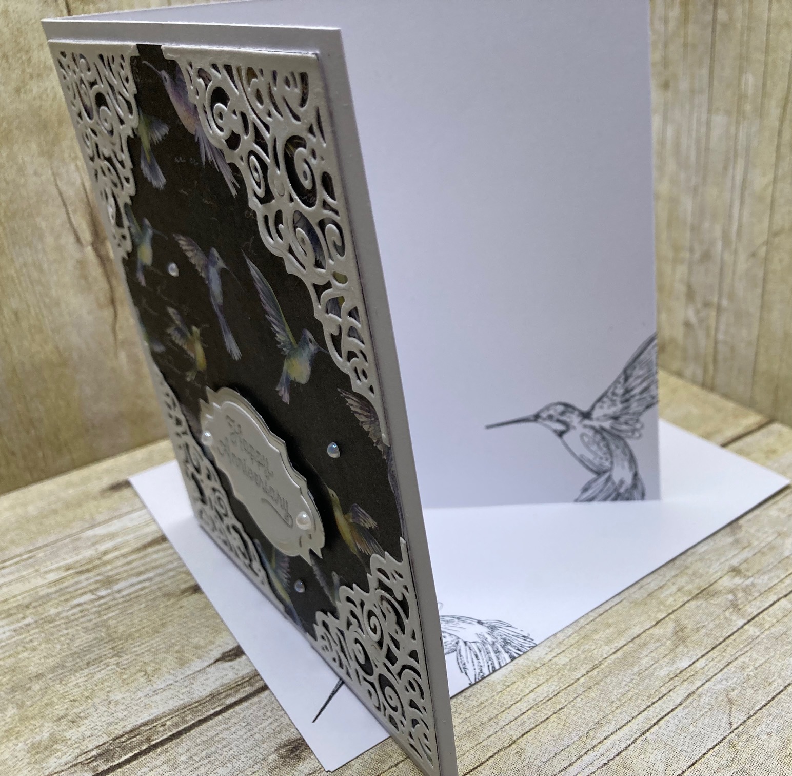 The result is a stunning hummingbird anniversary card that is almost too pretty to give away. With its elegant design and beautiful hummingbirds, this card is perfect for any couple celebrating their anniversary.